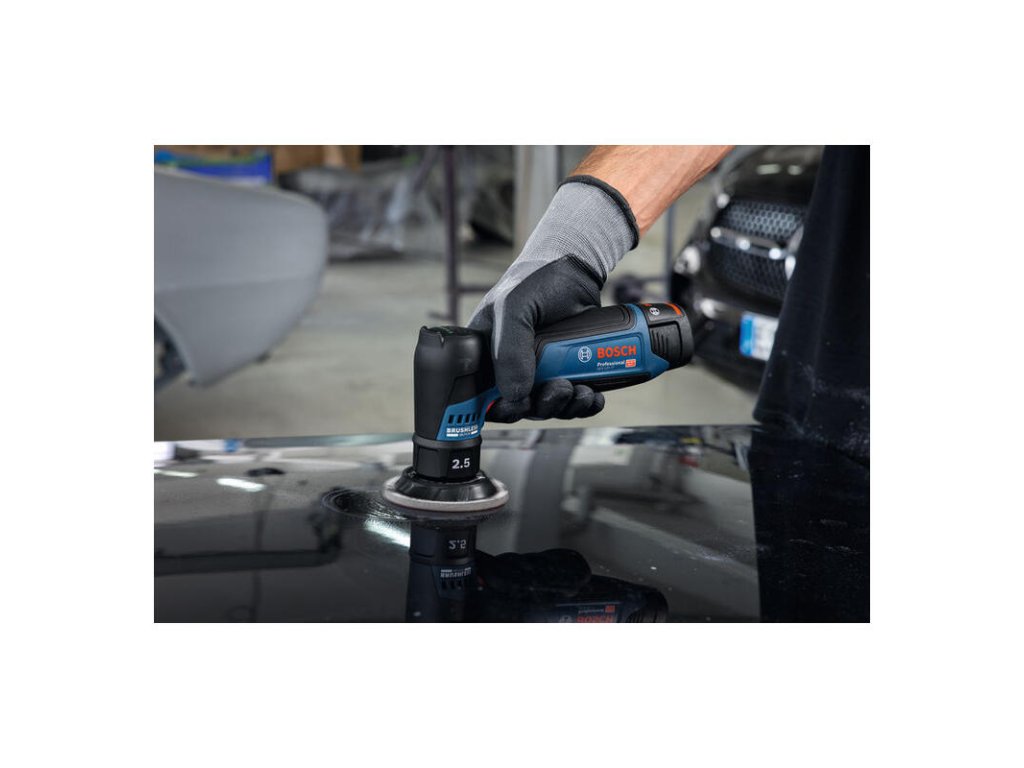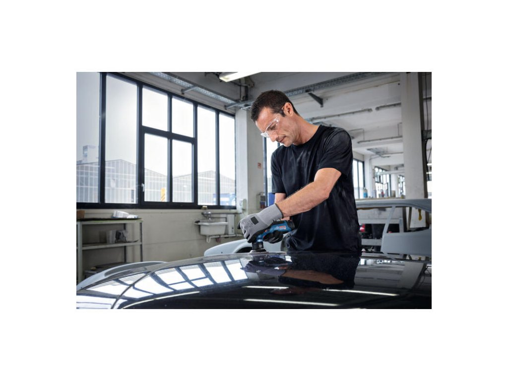 Menší tanier znamená vyššiu lokálnu presnosť pri brúsení rámov alebo leštení svetlometov. Bezuhlíkový motor zaisťuje konštantnú silu aj pri zaťažení. Vďaka 12V systému je brúska mimoriadne ľahká (0,5 kg), čo oceníte pri dokončovacích prácach na zvislých plochách a stropoch interiérov.Hlavné vlastnosti a výhody Excentrická brúska GEX 12V-77