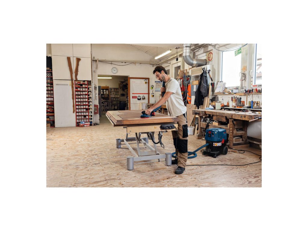 Väčšia plocha taniera znamená rýchlejší postup práce a lepšiu rovinnosť pri brúsení masívneho dreva. Unikátne oddelenie jednotky motora od telesa skrine výrazne znižuje vibrácie prenášané na ruky, čo umožňuje pohodlné používanie počas celého pracovného dňa.Hlavné vlastnosti a výhody Excentrická brúska GEX 18V-150-3