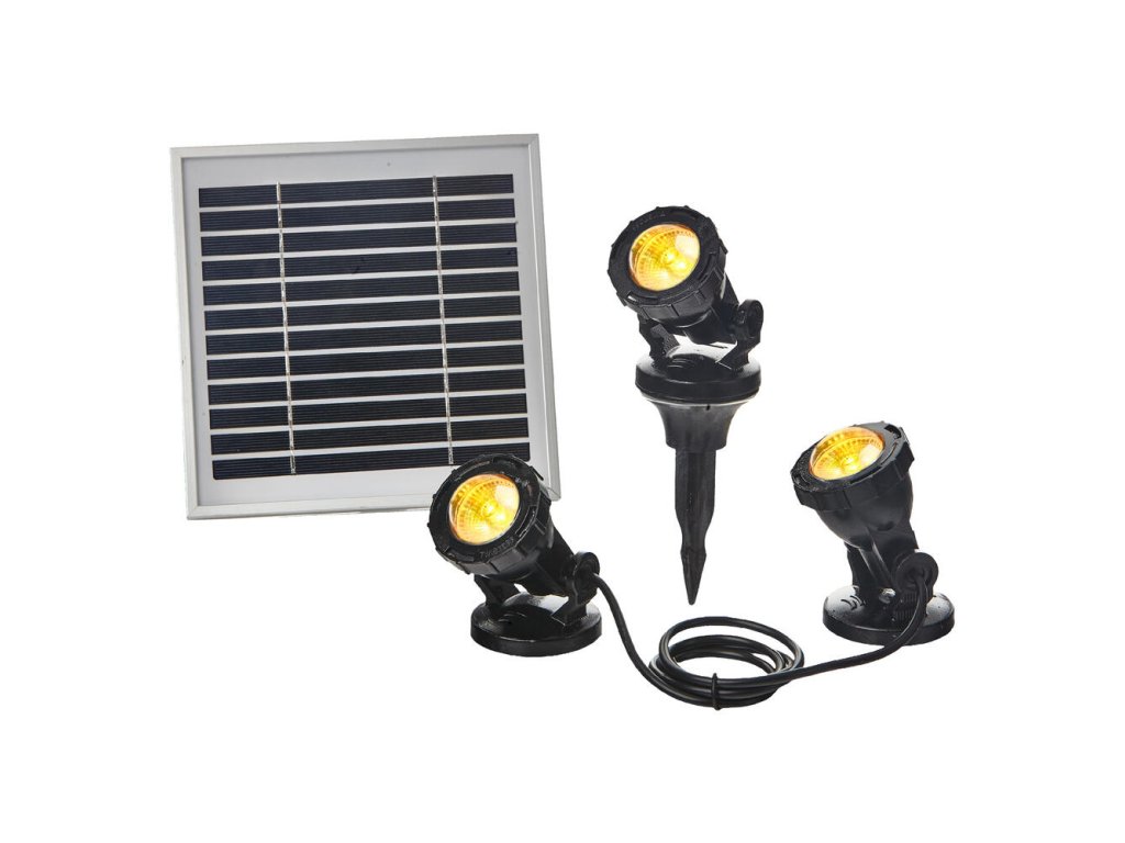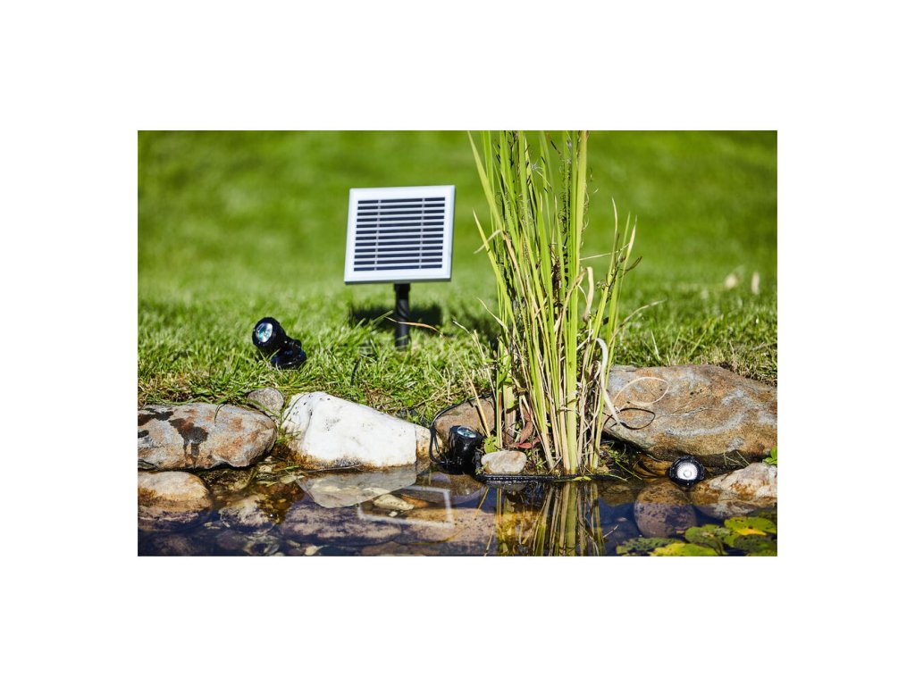 Možno použiť nad aj pod vodou. Vďaka tomu je ideálne na osvetlenie jazierka, ale možno ho použiť aj ako záhradné osvetlenie. Umiestnite ho ako nepriame osvetlenie pod rastliny. V tme získate krásne svetelné efekty. Vymeniteľné sklíčka na zmenu farby osvetlenia. Jednoduché umiestnenie do jazierka, kde ho stačí uložiť a obsypať ozdobnými kamienkami. Po umiestnení môžete nastaviť sklon osvetlenia. Svetlá nevytvárajú teplo. Pri používaní pod vodou majú veľmi dlhú životnosť. Pre bezpečnosť sa používa 12 V technológia. Jednoduchosť systému umožňuje každému, aby si svetlá nainštaloval sám. O dobíjanie batérie sa stará 3 W solárny panel. Svetlá majú možnosť nastavenia rôznych farieb. Vybavené sú senzorom stmievania, ktorý zapína svetlá za súmraku. Snímač stmievania je možné vypnúť. Svetlá sa dajú otáčať o 180°, čo uľahčuje ich inštaláciu.