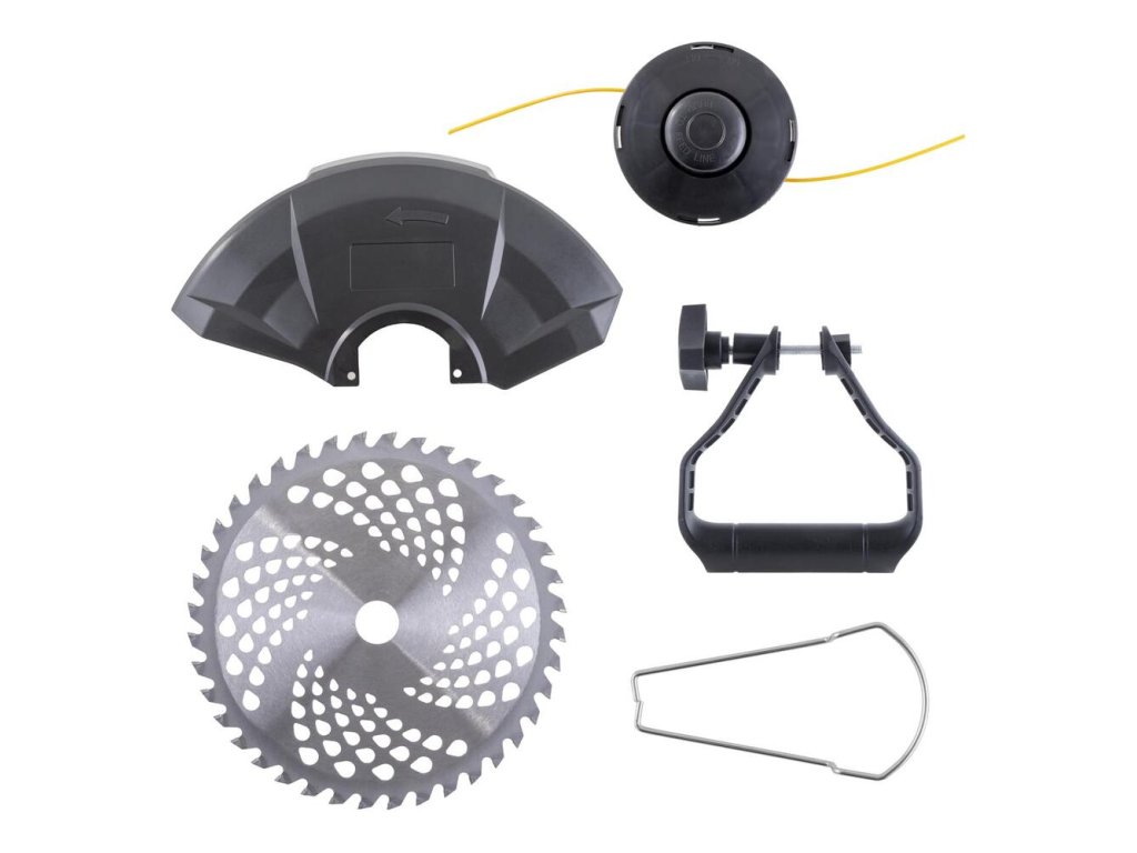 Variabilita použitia – dodáva sa s oceľovým kotúčom na náročnejšiu prácu a so strunovou hlavou na kosenie trávy.