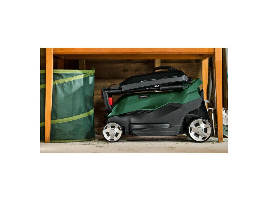 Áno, vďaka systému ErgoSlide sa rukoväte dajú bleskovo sklopiť a kosačku môžete skladovať aj vo vertikálnej polohe.