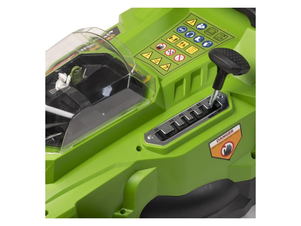 - 🔹 Centrálne nastaviteľná výška kosenia v 6 polohách (25 - 75 mm).
