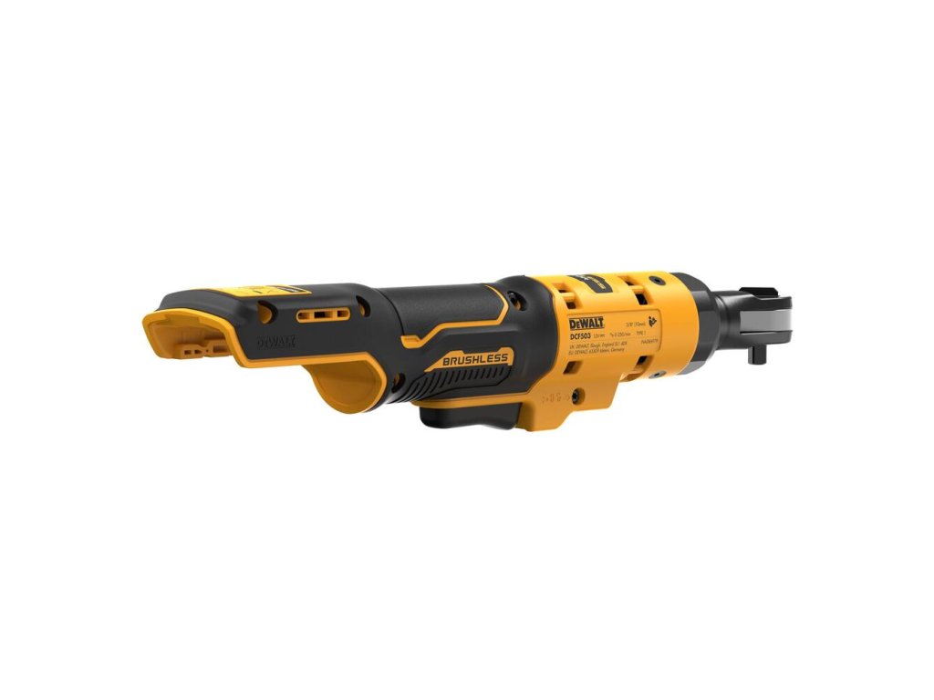 Tento račňový uťahovák DeWALT využíva výhody bezuhlíkového motora, ktorý zabezpečuje nielen vyššiu efektivitu, ale aj extrémne štíhly profil náradia. Vodorovne uložená batéria neprekáža pri manipulácii v motorovom priestore, čím zvyšuje vašu produktivitu. Spúšť s plynulou reguláciou vám umožní presne dávkovať otáčky a vyhnúť sa riziku nadmerného utiahnutia spojov.Hlavné vlastnosti a výhody račne DeWALT DCF503N Solo