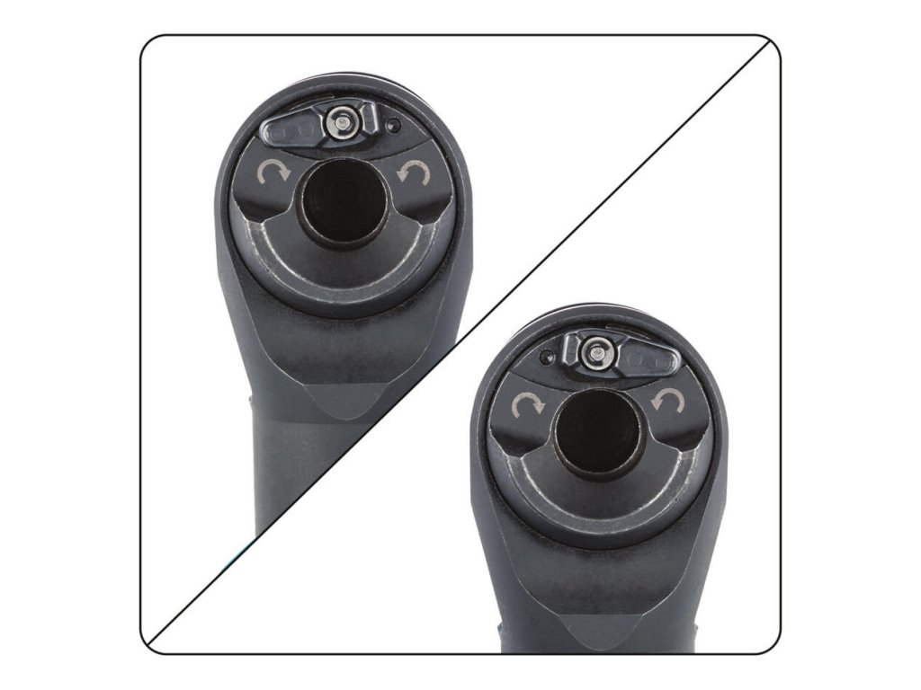 Smer otáčania meníte jednoduchým mechanickým prepínačom na zadnej strane hlavy račne, rovnako ako na klasickej manuálnej račni.