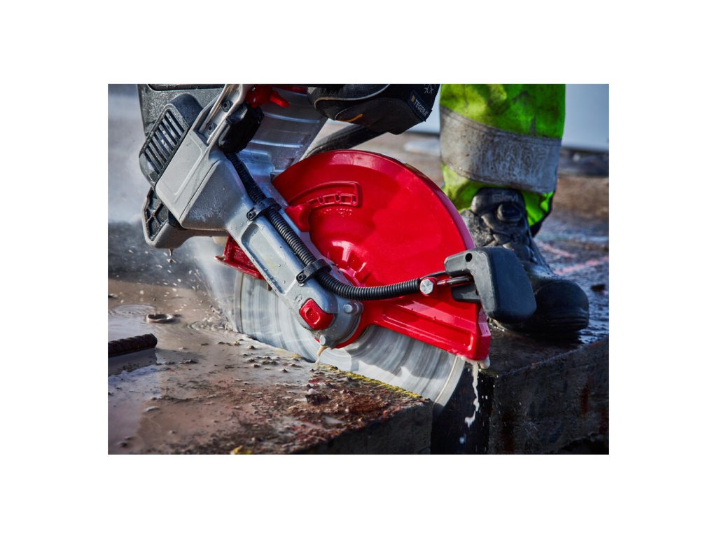 Model je vybavený nastaviteľným krytom kotúča, ktorý umožňuje prispôsobenie až do piatich polôh, čo zvyšuje bezpečnosť a flexibilitu pri práci. Ďalšou výhodou je nastaviteľný prietok vody, ktorý pomáha chladenie a znižuje tvorbu prachu počas rezania.