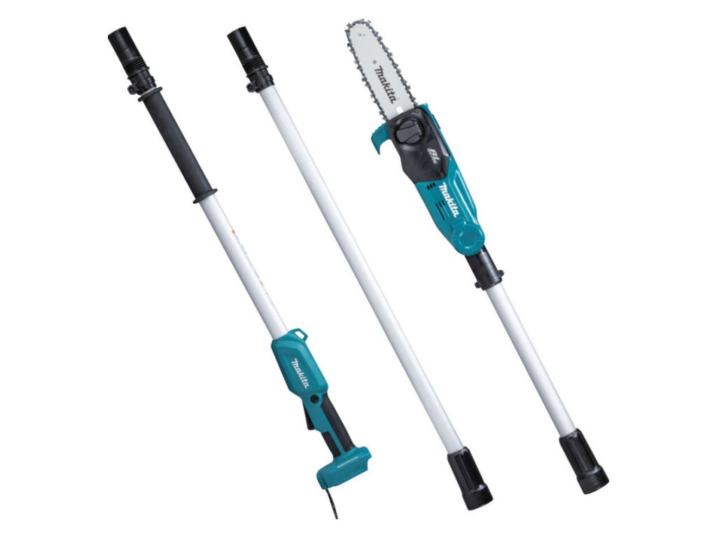 - Aku vyvetvovacia píla 18 V LXT na prerezávanie korún stromu zo zeme s dosahom do 3,5 m.
