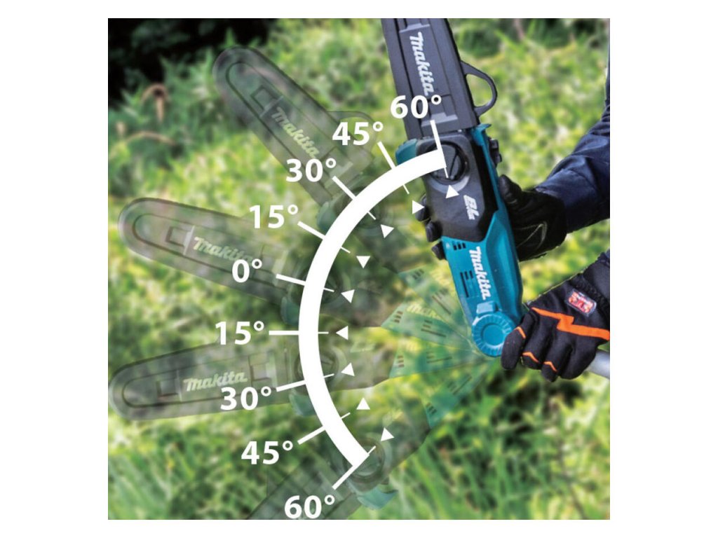 - Nastavenie uhla hlavy 60° do prava a 60° doľava, úzke teľo rezného nástroja pre ešte lepší prístup k rezanemú konáru.