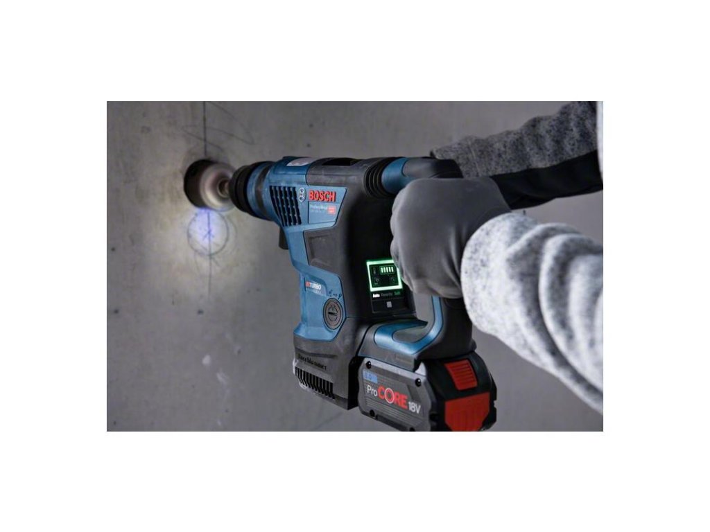 Model GBH 18V-34 CF je vybavený digitálnym rozhraním pre voľbu troch režimov: Auto pre maximálnu silu, Favorite pre vlastné nastavenie a Soft pre prácu s krehkými materiálmi. Funkcia Soft Start zasa zaručuje presné nasadenie sekáča bez odskočenia. V kombinácii s batériami ProCORE18V 8.0Ah získate výkon, ktorý hravo nahradí káblové náradie najvyššej triedy, pričom technológia KickBack Control zabezpečí vašu ochranu pri zaseknutí nástroja.Hlavné vlastnosti a výhody vŕtacie kladivo GBH 18V-34 CF
