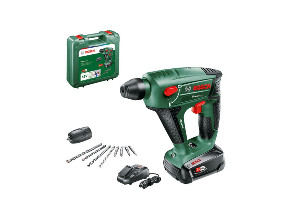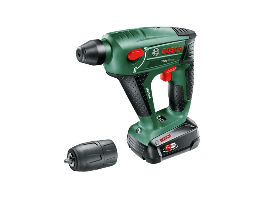Už vás nebaví meniť vŕtačku za kladivo pri každej druhej diere? Akumulátorové vŕtacie kladivo BOSCH Uneo Maxx v 18V verzii je najvýkonnejší člen rodiny Uneo. Toto univerzálne náradie 3 v 1 vám umožní vŕtať s príklepom do betónu, vŕtať bez príklepu do dreva či kovu a skrutkovať s vysokým krútiacim momentom. Vďaka výkonnej 18V batérii a pneumatickému príklepu už nebude žiadna stena v domácnosti prekážkou.Sila systému POWER FOR ALL 18V