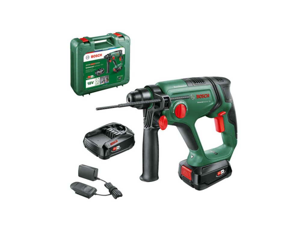 Tento model patrí do rodiny Bosch 18V POWER FOR ALL, čo znamená neobmedzenú kompatibilitu batérií s viac ako stovkou ďalších zariadení. Systém ovládania vibrácií a inteligentná elektronika Syneon zabezpečujú, že práca s kladivom bude pre vás pohodlná a energeticky úsporná. Univerzálne skľučovadlo SDS plus umožňuje bleskovú výmenu vrtákov a sekáčov bez použitia kľúčov, zatiaľ čo robustný kufor udrží celú sadu v bezpečí a poriadku.Hlavné vlastnosti a výhody vŕtacie kladivo UniversalHammer 18V