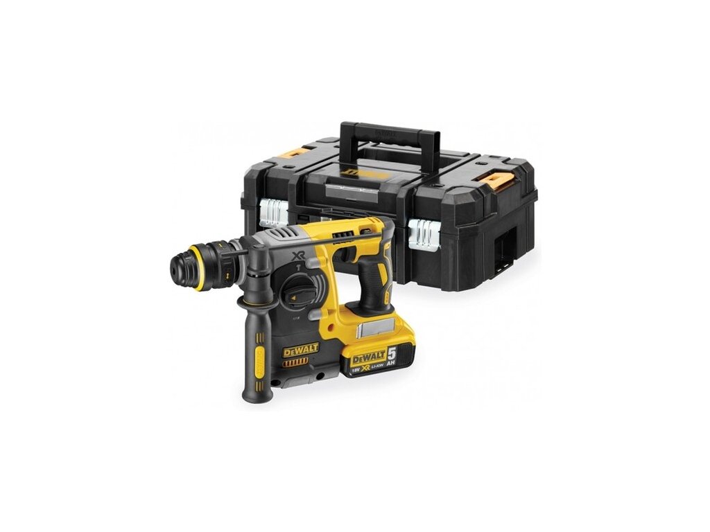 Bezpečnosť a zdravie pri práci sú pri modeli DCH274 garantované. Systém aktívnej regulácie vibrácií udržuje úroveň otrasov na špičkových 6,6 m/s2. Vďaka elektronickej spojke je zaručený trvalo vysoký krútiaci moment a ochrana pri zaseknutí vrtáka. Tento set obsahuje dve 5,0 Ah XR batérie a nabíjačku v systémovom kufri TSTAK, čo zabezpečuje mobilitu a poriadok v náradí.Hlavné vlastnosti a výhody vŕtacie kladivo DCH274P2T
