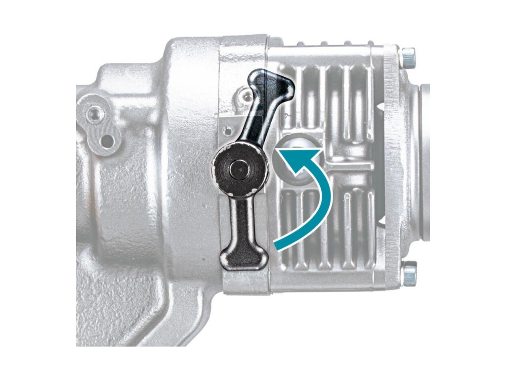 - Páka reversu, v nutnom prípade je možné razník vrátiť do štartovacej polohy.
