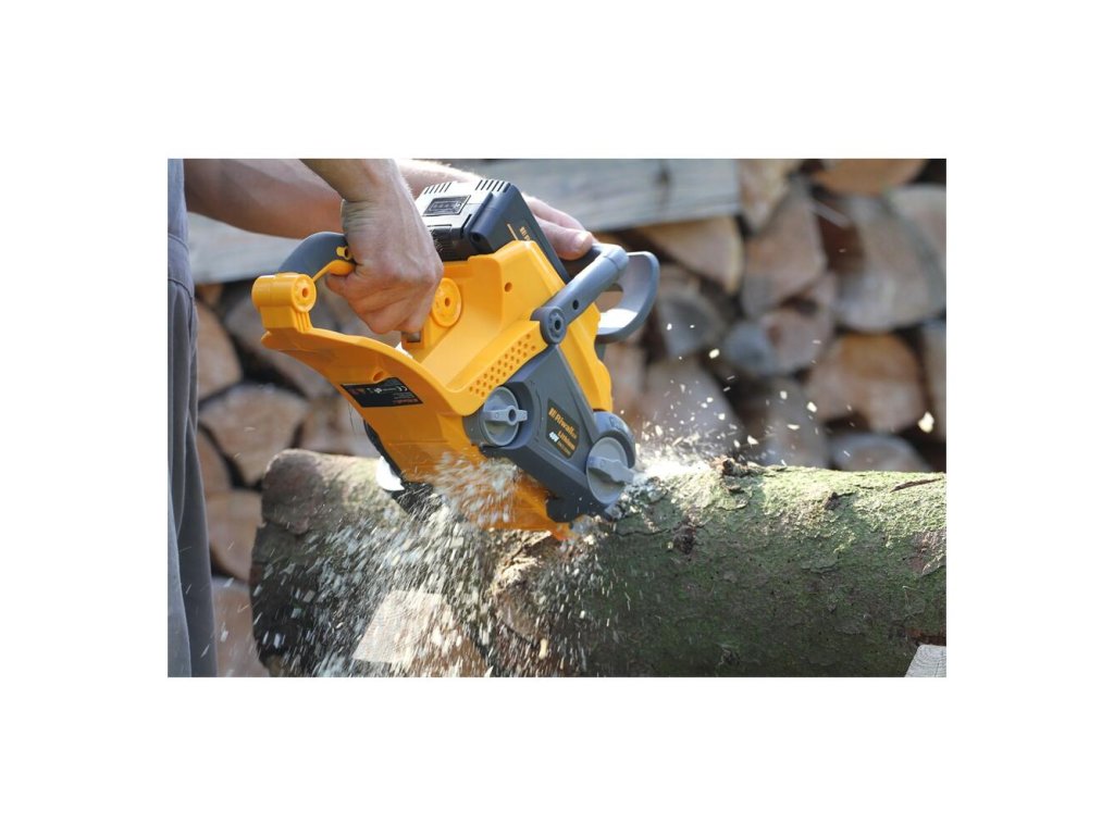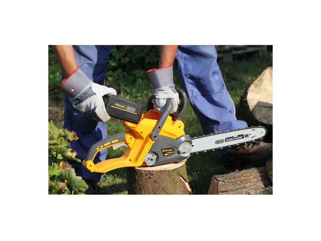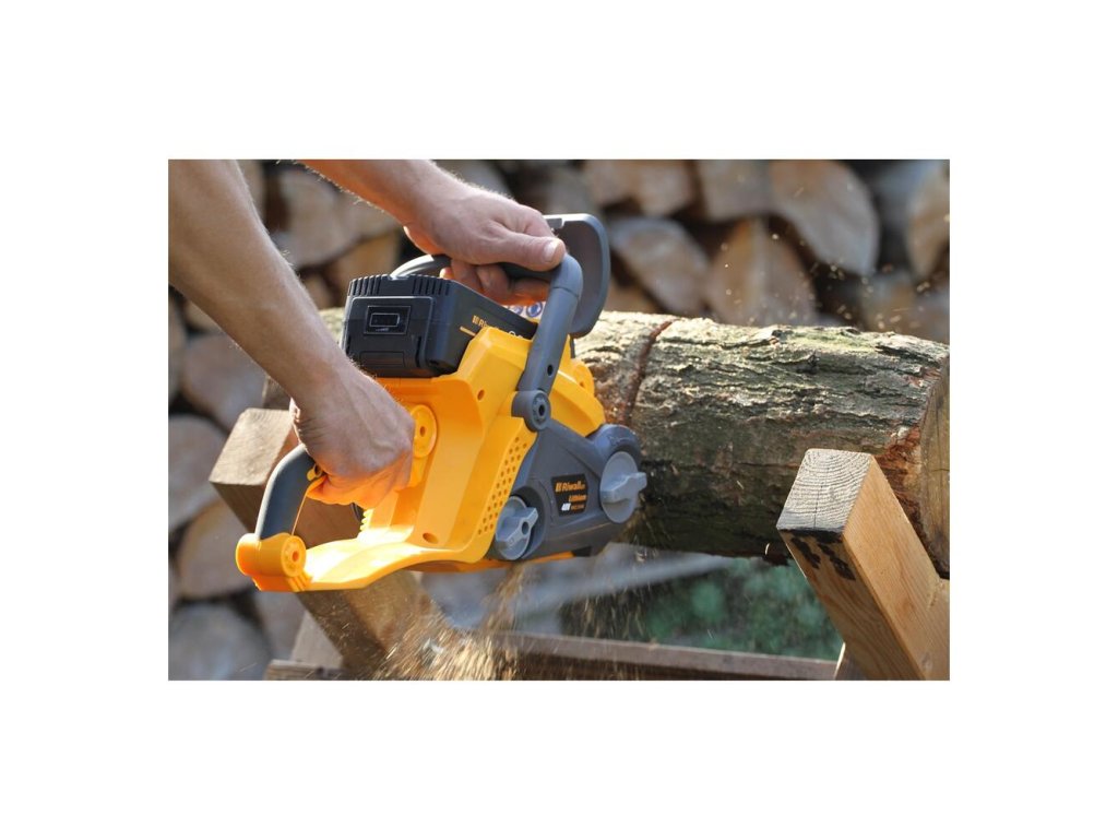 transparentný ochranný kryt rúk pre bezpečnú kontrolu stroja pri rezaní ochrana proti preťaženiu a tyčová brzda možno kombinovať s akýmkoľvek akumulátorom a nabíjačkou Riwall