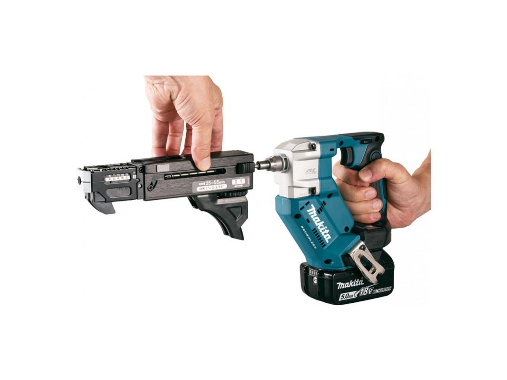 Čaká vás montáž veľkých plôch sadrokartónu? Akumulátorový skrutkovač Makita DFR452Z s automatickým podávačom radikálne skracuje čas montáže. Vďaka vysokým otáčkam a zásobníkovému mechanizmu skrutkujete jednou rukou s extrémnou presnosťou.Revolučný systém Push-Drive