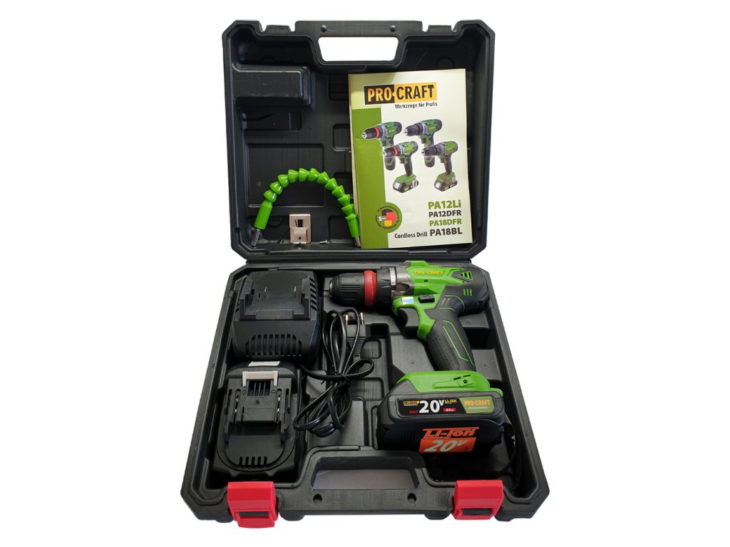 Tento model je dodávaný v súprave s dvoma 20V batériami a ohybným nadstavcom pre prácu pod uhlom. Plynulá regulácia otáčok a 18 stupňov uťahovacieho momentu zabezpečujú presné montáže bez poškodenia materiálu. LED osvetlenie s funkciou dosahu vám posvieti presne na hrot skrutky.Hlavné vlastnosti a výhody skrutkovač ProCRAFT PA18DFR