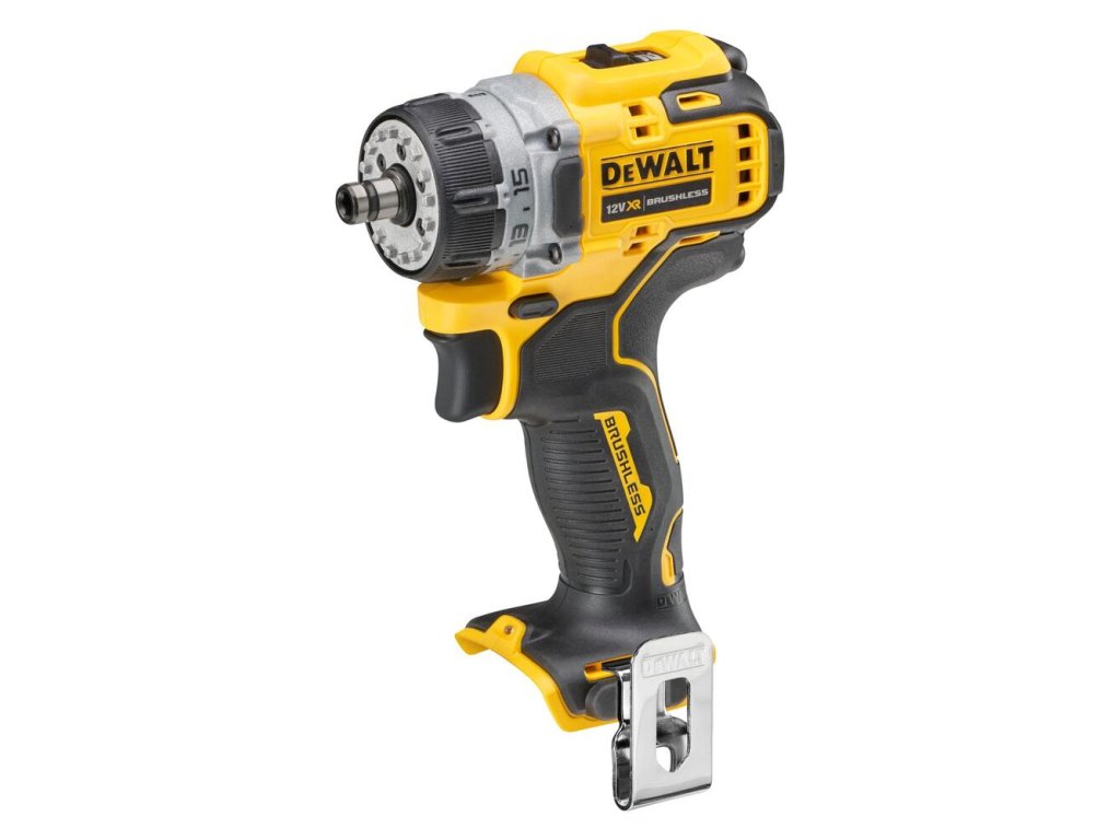 Prečo siahnuť po DCD703NT? Balenie obsahuje štyri hlavy: klasické 10 mm skľučovadlo, pravouhlý nadstavec, excentrický nadstavec pre prácu pri krajoch a rýchloupínacie šesťhranné upínanie pre bity. Vďaka 2-rýchlostnej prevodovke a 15 nastaveniam spojky získate absolútnu kontrolu. Nízka hmotnosť stroja len 0,7 kg zaručuje, že sa s ním neunavíte ani pri zložitej celodennej montáži.Hlavné vlastnosti a výhody skrutkovač DCD703NT