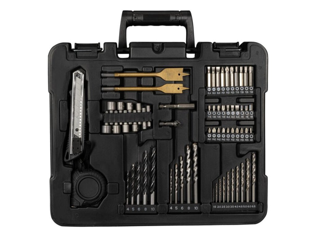 Aké vrtáky sú v 126-dielnej sade?Sada obsahuje vrtáky do dreva (4-10mm), muriva (4-10mm), kovu (1,5-6,5mm) a špeciálne ploché frézovacie vrtáky do dreva.Dá sa skľučovadlo odobrať aj počas vŕtania?