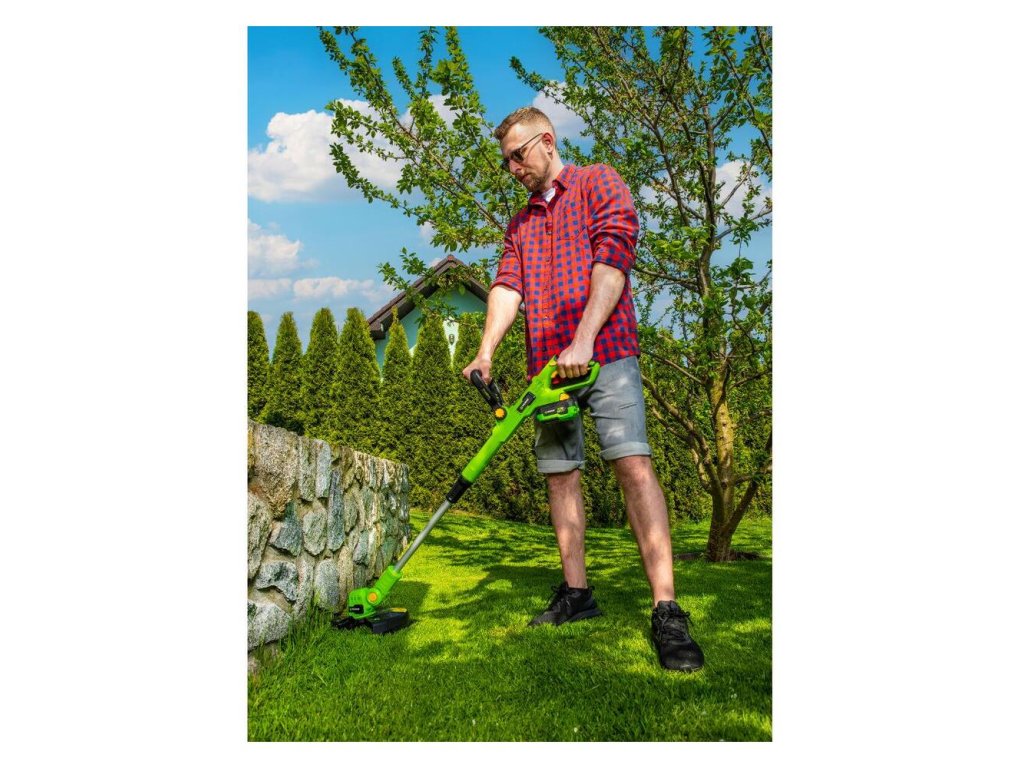 Tento model je vybavený vodiacim kolieskom, ktoré zabezpečuje presné kosenie pozdĺž múrov bez poškodenia žacej hlavy.Dôležitý benefit: kĺbová žacia hlava a teleskopická násada umožňujú ergonomické dokášanie aj v neprirodzených polohách, pričom elektronická riadiaca jednotka efektívne využíva každú miliampérhodinu vašej batérie.