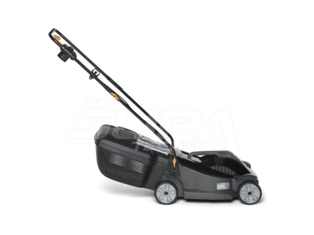 Tichá a ekologická kosačka je poháňaná elektrický motorom o výkone 1400 W a má 40 l látkový zberný koš s ukazovateľom naplnenia.
