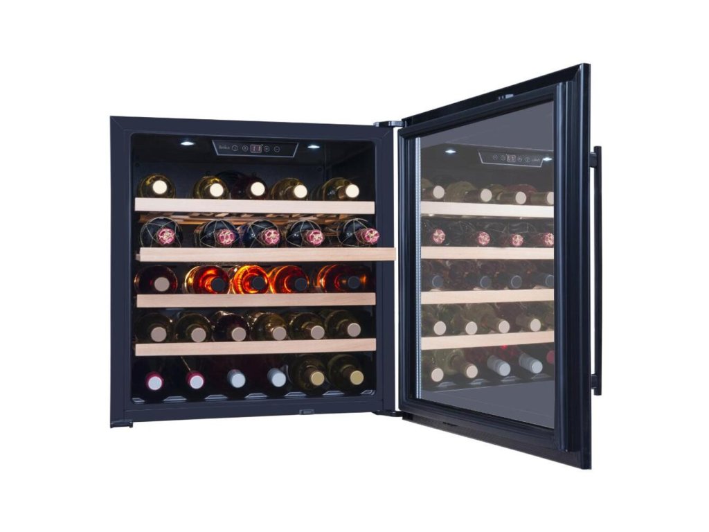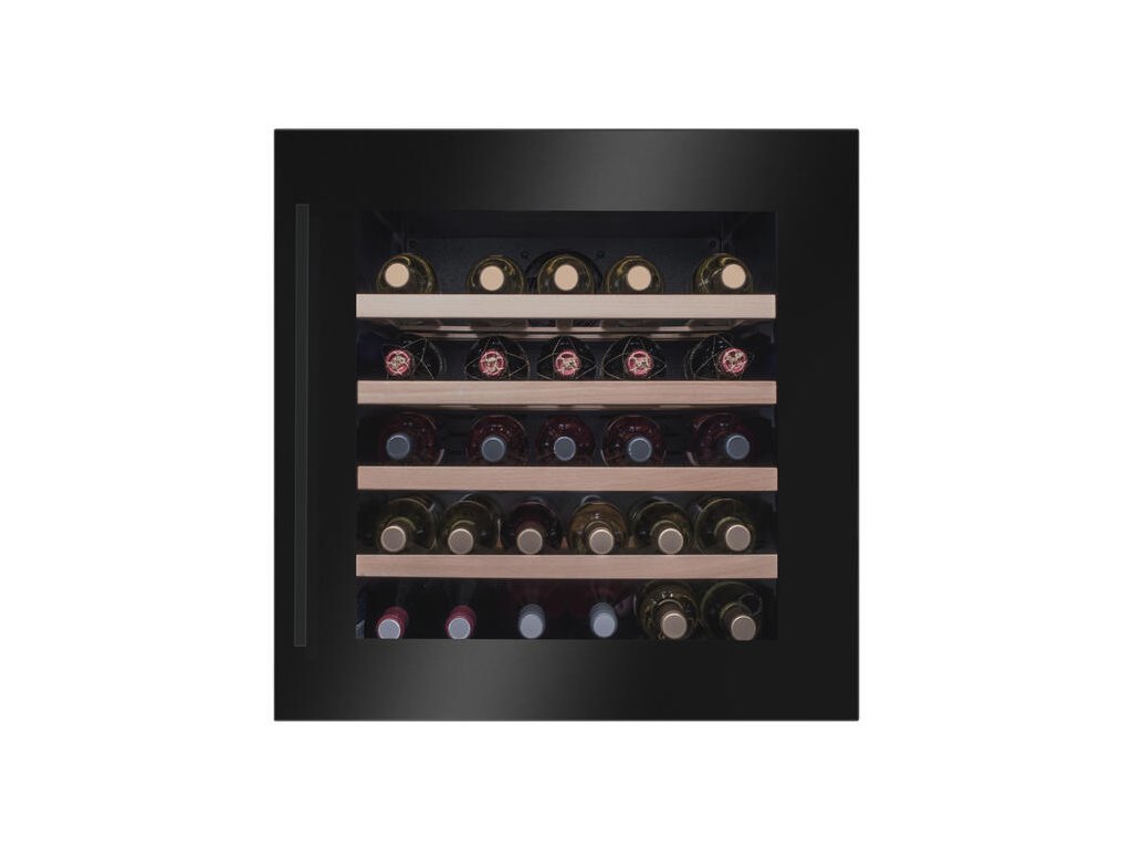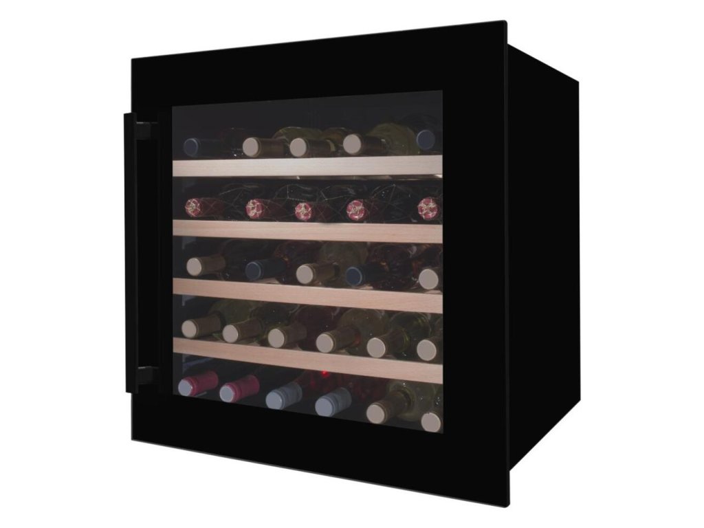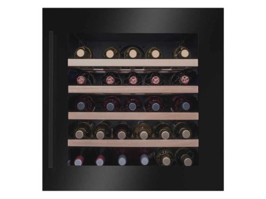 Vinotéka vstavaná Jednozónová; Farba Čierna; Energetická trieda: A; Celkový čistý objem: 90 litrov; Kapacita fliaš: 40 ks ;. Ročná spotreba energie: 140 kWh; Hlučnosť: 39 dB (A); displej; Teplota nastaviteľná v rozsahu: 5 až 20 ° C; Automatické odmrazovanie; Alarm zvýšenej teploty; Alarm otvorených dverí; Udržiavanie optimálnej vlhkosti; Počet chladiacich zón: 1; Počet políc: 4; Materiál políc: drevo; Vnútorné osvetlenie LED; Anti-UV ochranné sklo vo dverách; Možnosť otočenia otvárania dverí; Klimatická trieda: ST; Spôsob chladenia: kompresor; X type designDodatočné parametre