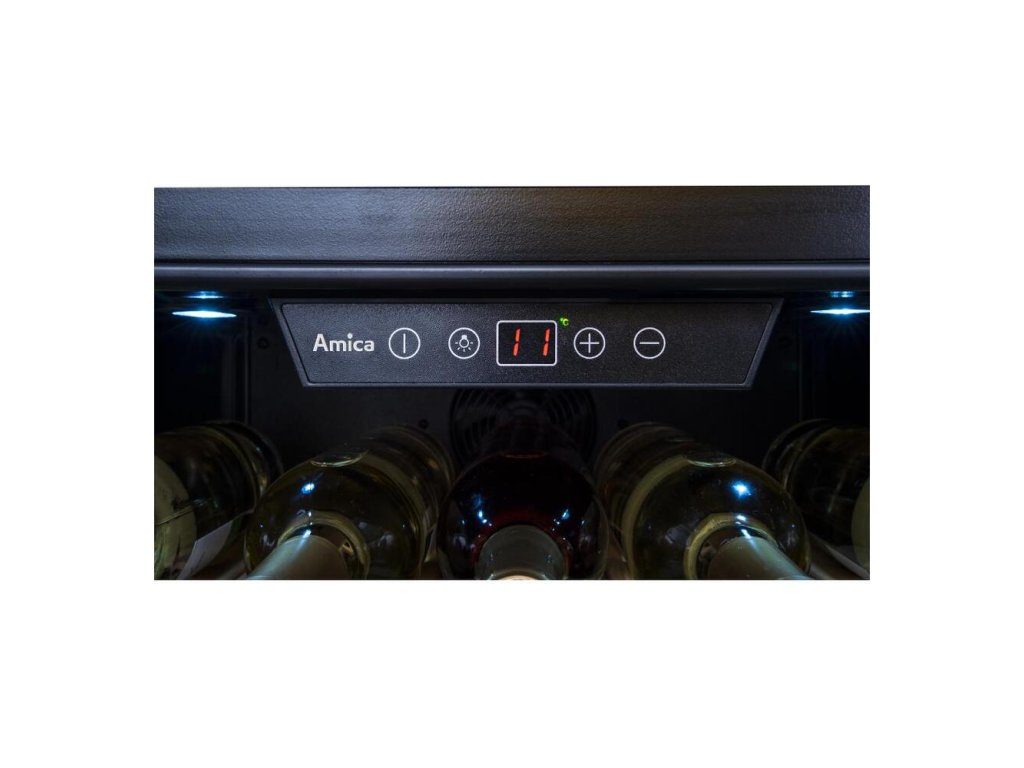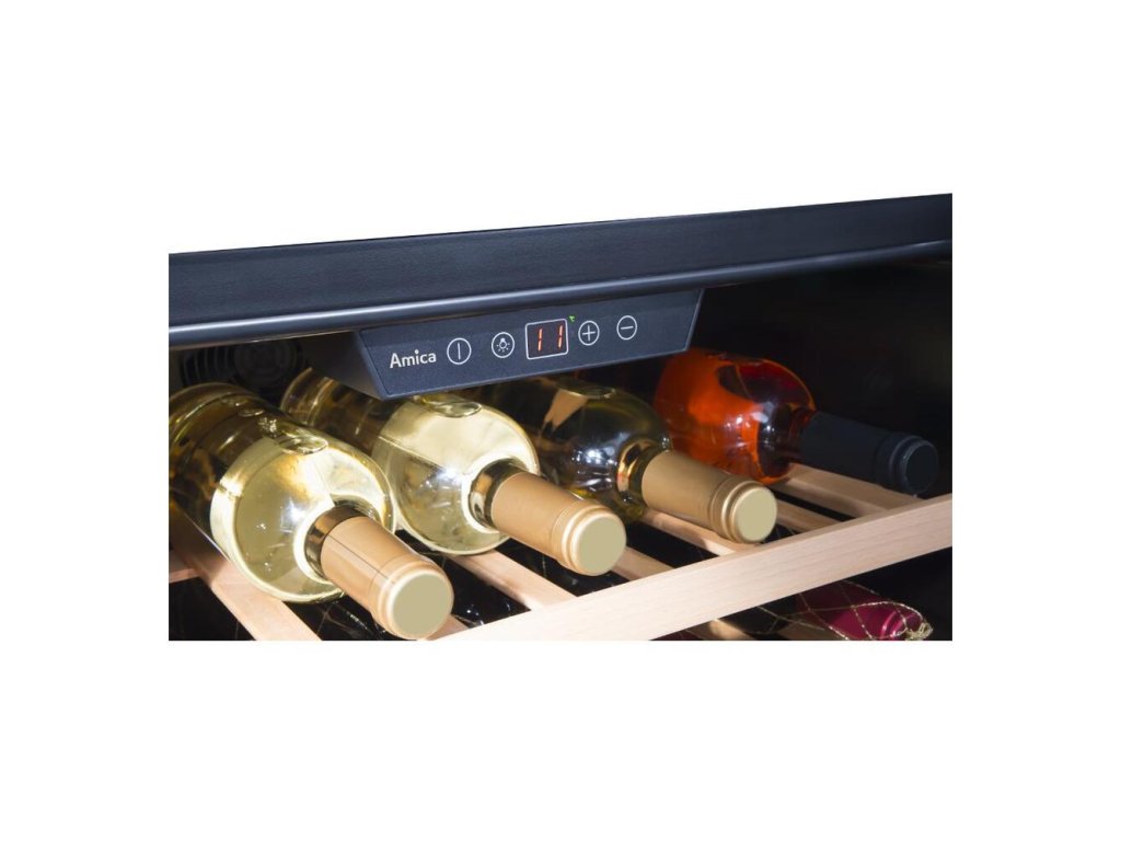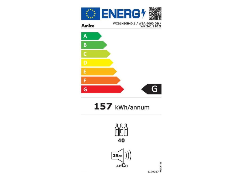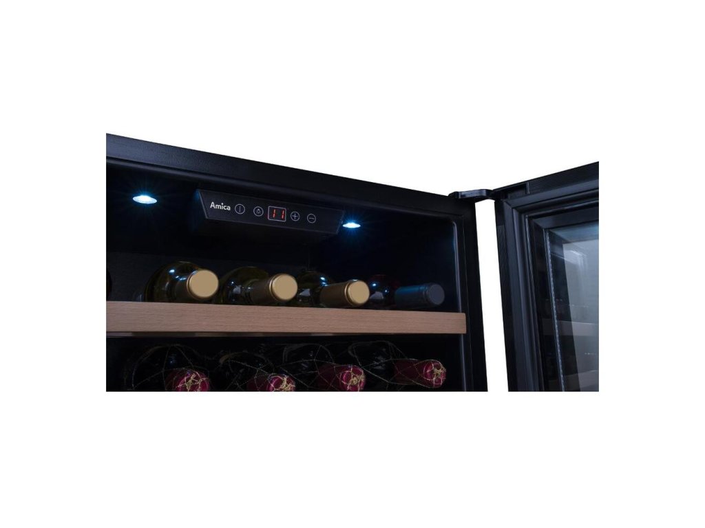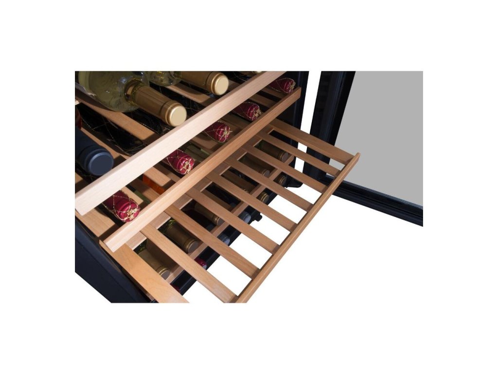 Vinotéka vstavaná Jednozónová; Farba Čierna; Energetická trieda: A; Celkový čistý objem: 90 litrov; Kapacita fliaš: 40 ks ;. Ročná spotreba energie: 140 kWh; Hlučnosť: 39 dB (A); displej; Teplota nastaviteľná v rozsahu: 5 až 20 ° C; Automatické odmrazovanie; Alarm zvýšenej teploty; Alarm otvorených dverí; Udržiavanie optimálnej vlhkosti; Počet chladiacich zón: 1; Počet políc: 4; Materiál políc: drevo; Vnútorné osvetlenie LED; Anti-UV ochranné sklo vo dverách; Možnosť otočenia otvárania dverí; Klimatická trieda: ST; Spôsob chladenia: kompresor; X type designDodatočné parametre