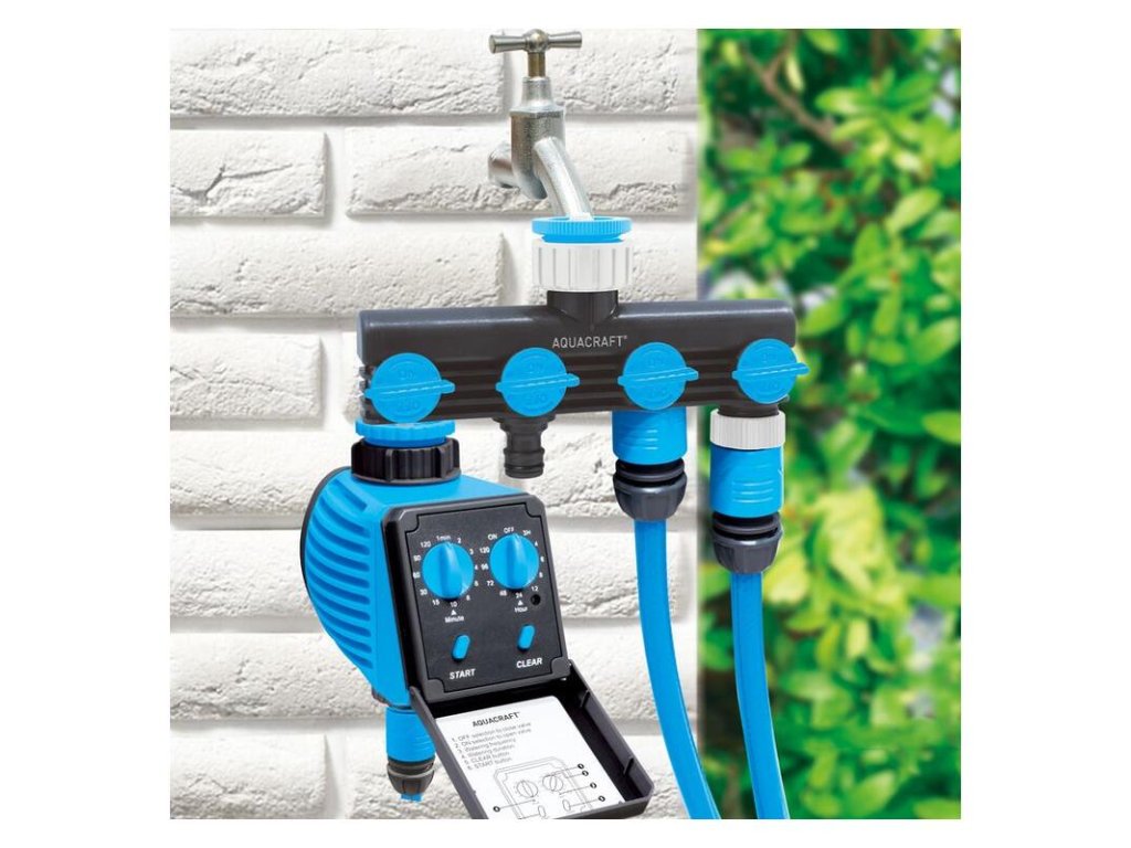 - štyri samostatné nastaviteľné spojky na hadicu alebo časovač- všetky spojky môžu byť použité súčasne