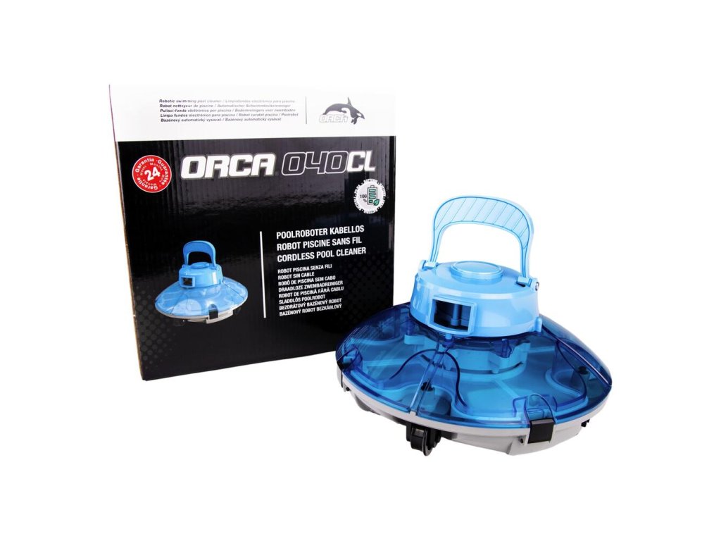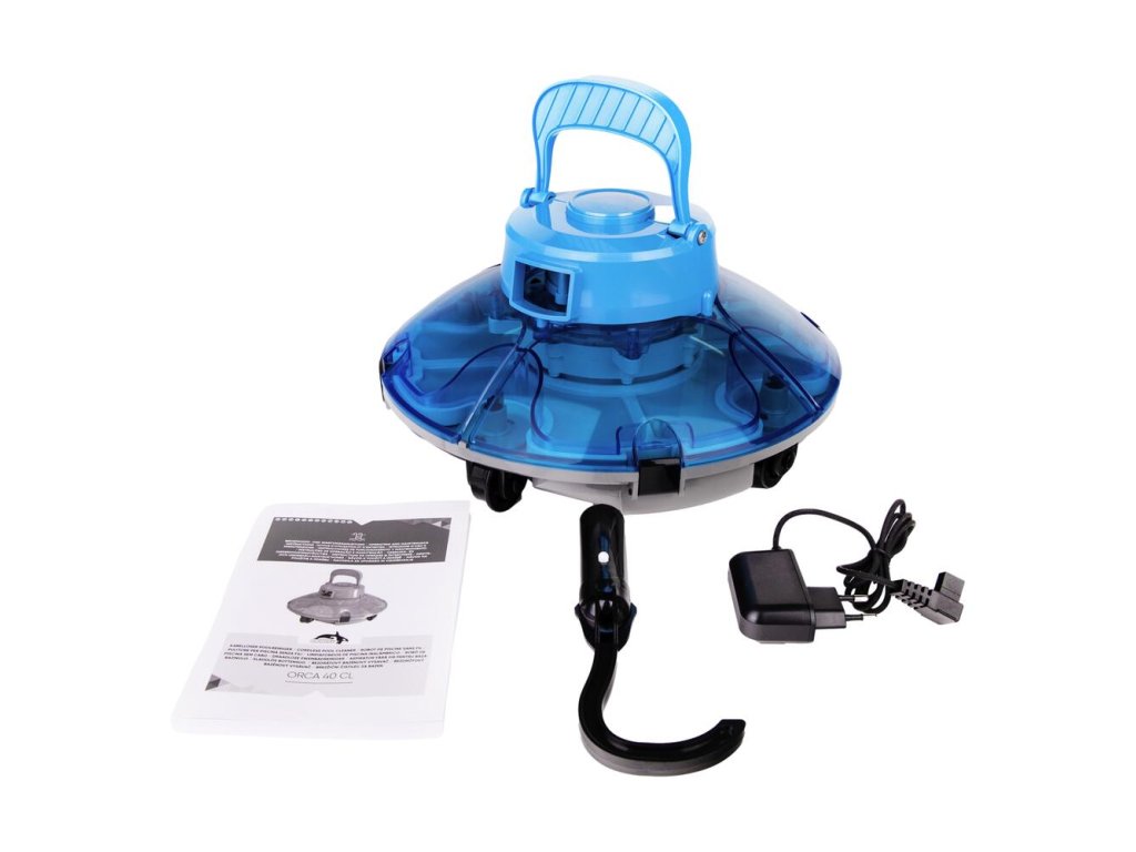 Automatický vysávač Orca 40 AKU na batérie vyčistí bazén s plochou do 30 m2 a má výdrž batérie 60 minút nepretržitej práce.