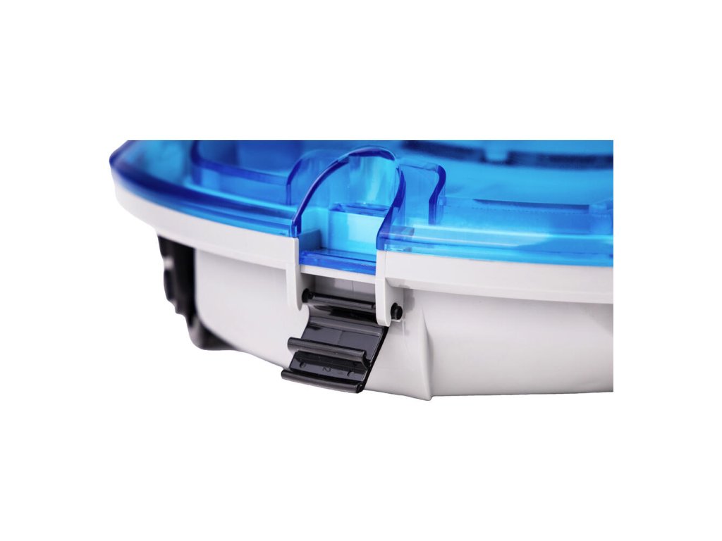 Otvorením štyroch spôn sa vysávač rozdelí na dve časti (motor a filter), vyprázdnite a prepláchnite sito pod tečúcou vodou.
