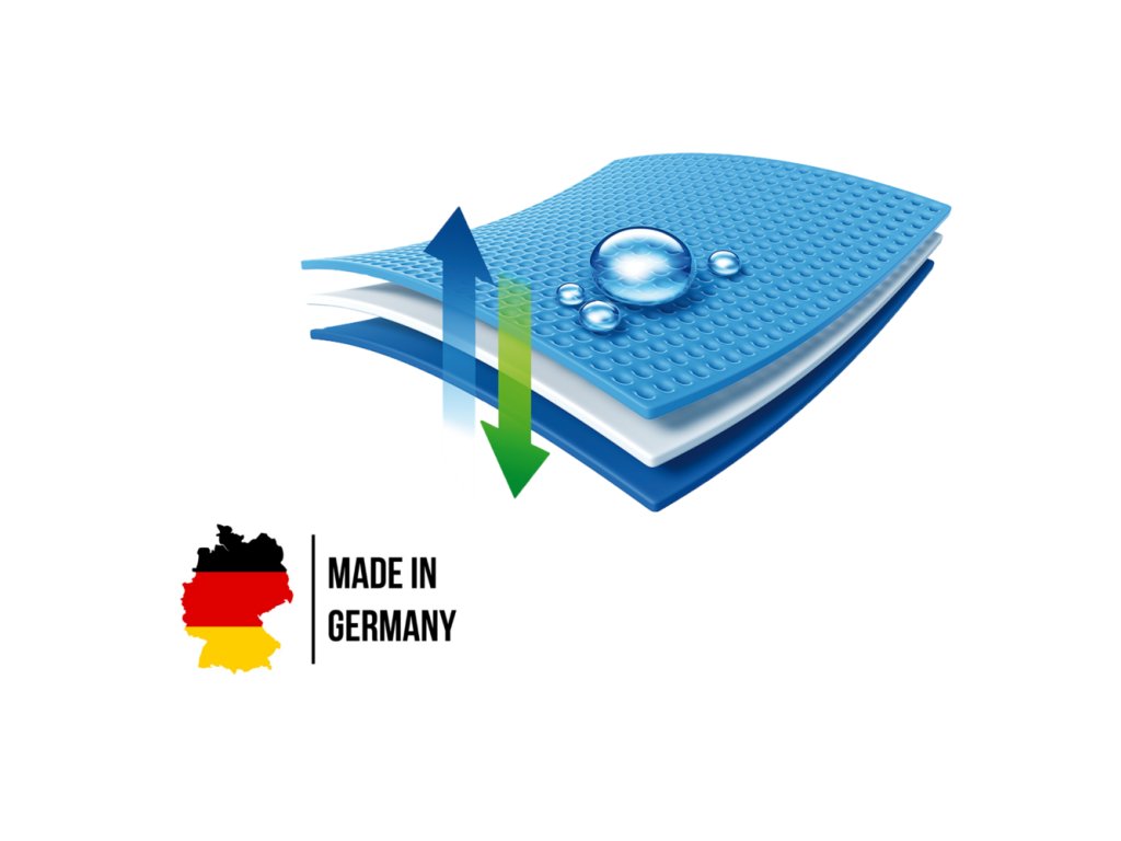 Kvalitná 3-vrstvová bazénová fólia vyrábaná vo vlastnom závode CF Group v Nemecku (najväčší výrobca bazénových fólií v Európe). Fólia je vysokofrekvenčne zváraná, čo zaručuje kvalitné zváranie a dlhodobú tesnosť spojov.