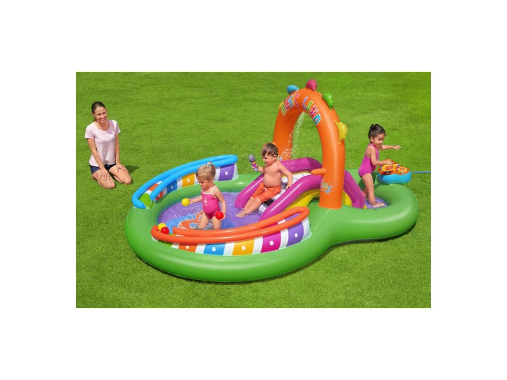 Detské hracie centrum Bestway® 52331 je vybavené priestrannou šmykľavkou, veľkým a malým bazénikom a nafukovacím oblúkom. Hracie centrum je vhodné pre deti od 2 rokov. Deti sa v bazéniku zabavia 6 loptičkami na hranie, či hrou s hádzaním kruhu. Užijú si tak slnečné dni plné zábavy.