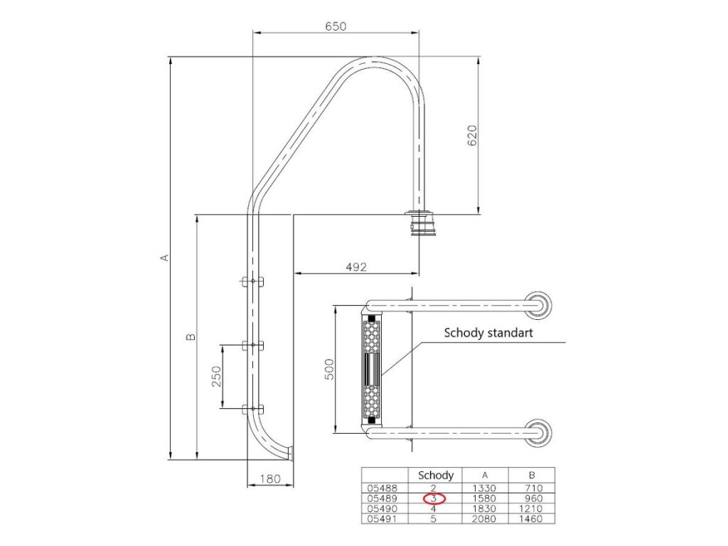 - Bazénový rebrík z nehrdzavejúcej ocele V2A,