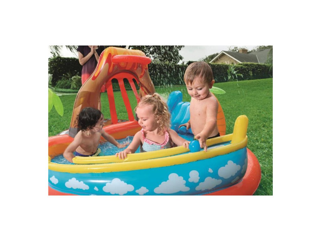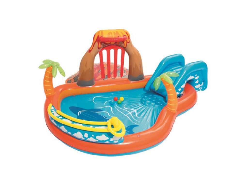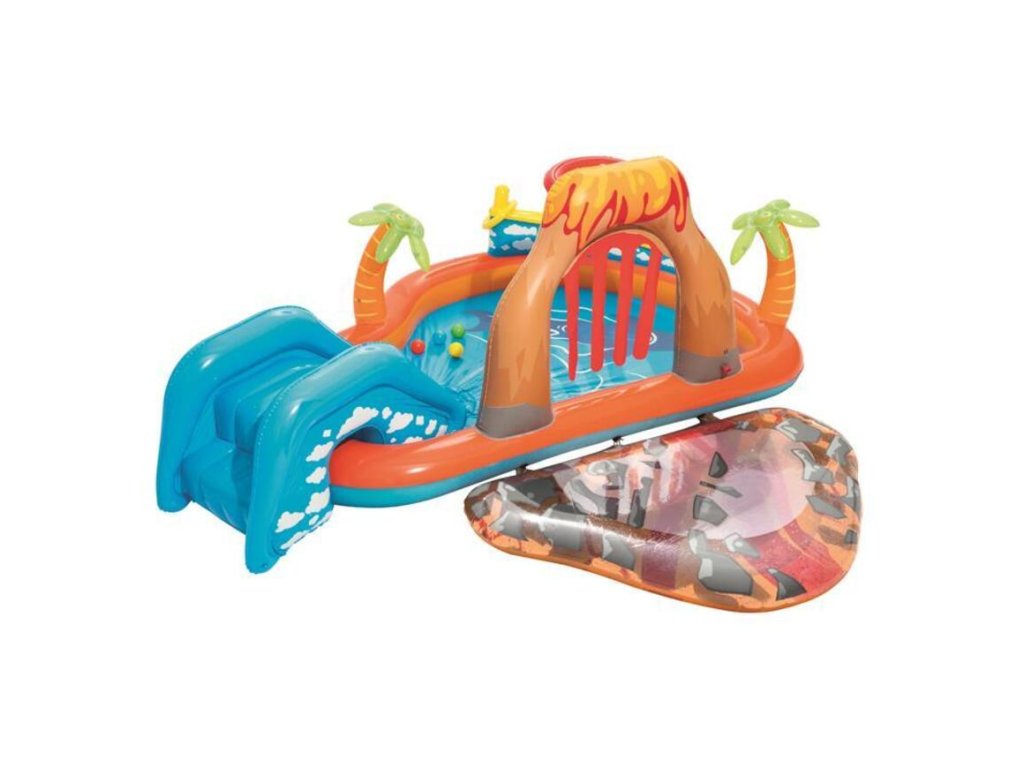 Detské zábavné hracie centrum Bestway Lava Lagoon 53069 je vybavené štyrmi loptičkami na hranie a jedným nafukovacím kruhom na hádzanie. O pohodlie a bezpečie pri hre vašich deti sa postará nafukovací vankúš umiestnený na dne bazéna. Deti si užijú veľa zábavy šmýkaním sa po šmykľavke a hádzaním loptičiek. Hracie centrum je vhodné pre všetky deti od 2 rokov. Prinesie letné dni plné zábavy.