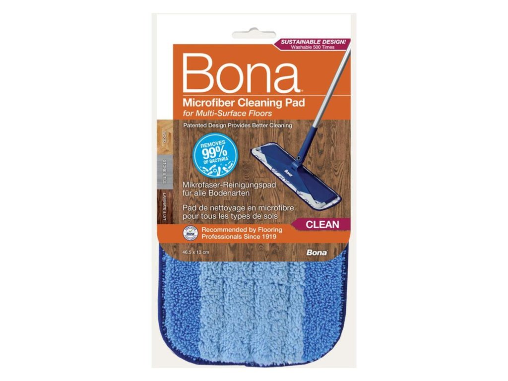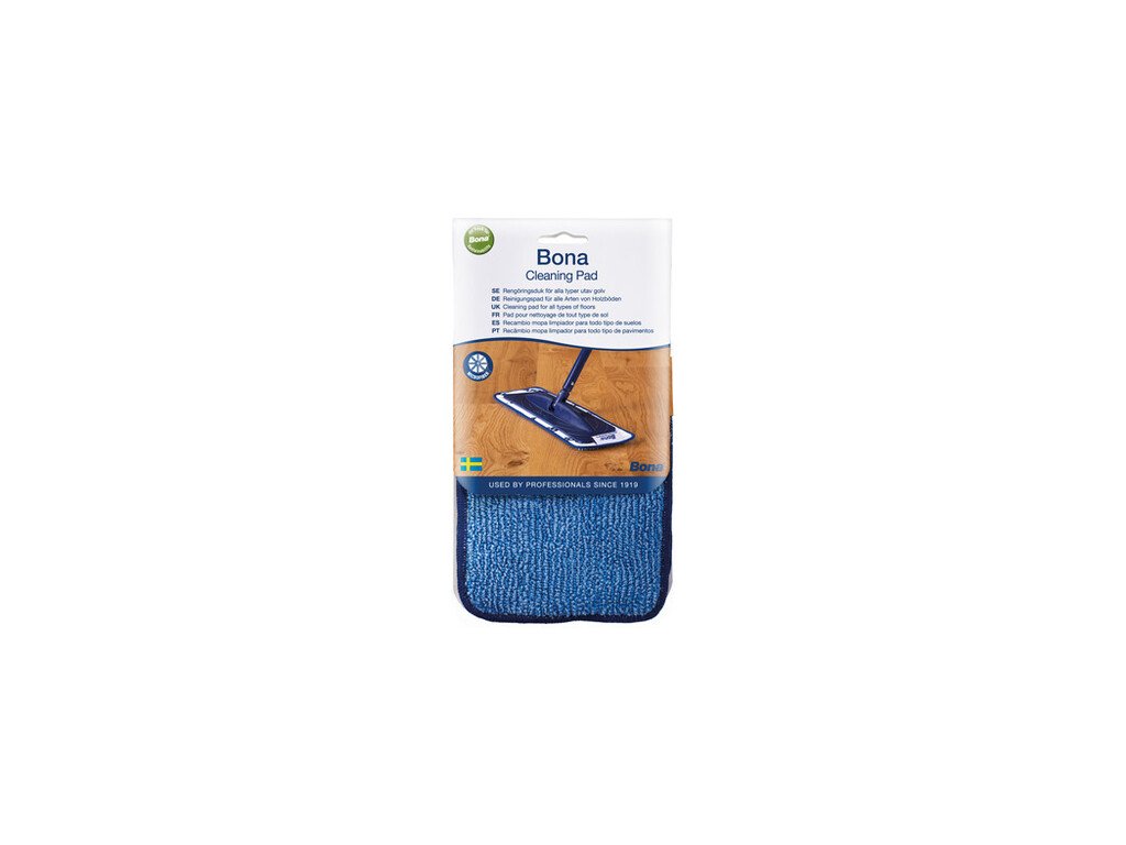 Bona Cleaning Pad (modrá utierka) je pratelná mikrovláknová utierka, ktorá sa prichytí na suchý zips umiestnený na Bona Mope alebo Bona Spray Mope. Pratelná čistiaca utierka z mikrovlákna (prať bez aviváže). Vhodná pre čistenie korkovej podlahy, laminátu. parkiet a vinylovej podlahy. Šetrná k podlahe.