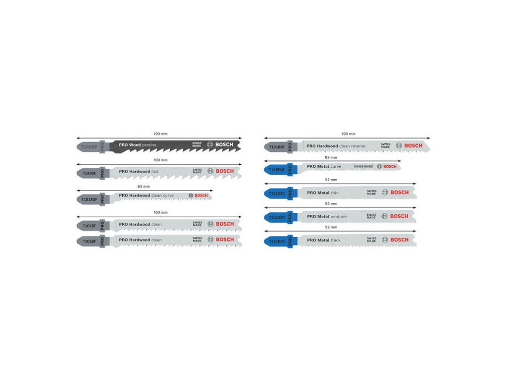 Sada PRO Wood and Metal obsahuje listy priamočiarej píly vyrobené z kombinácie dvoch kovov: majú ozubenie z rýchloreznej ocele (HSS) spojené s telom z uhlíkovej ocele (HCS), čo im zaisťuje pevnosť a odolnosť