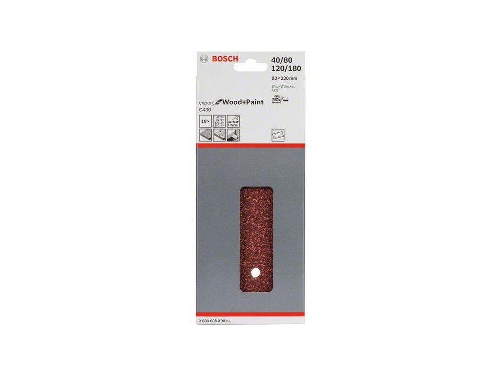 Bosch 10-dielna súprava brúsnych listov 93 230 mm x P40, x P80, x P120, x P180 2608608X98