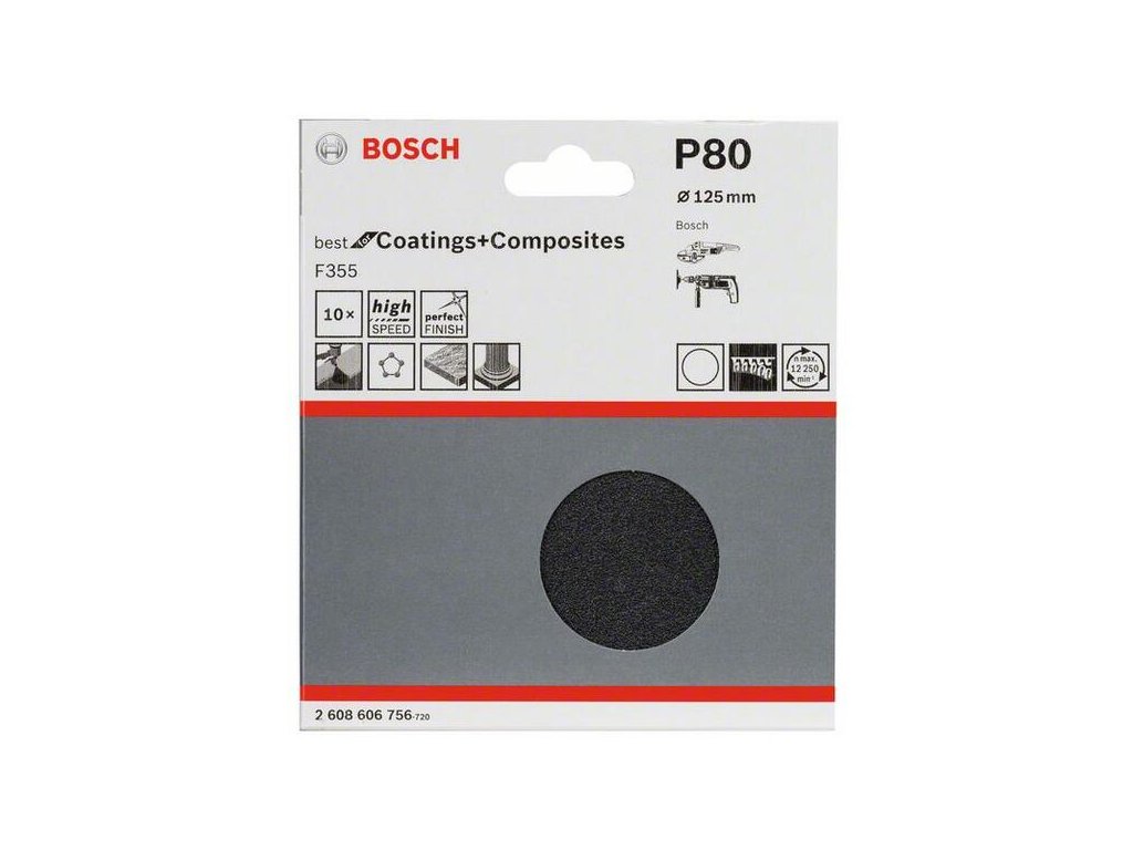 Bosch 10-dielna súprava brúsnych listov F355 125 mm, P80
