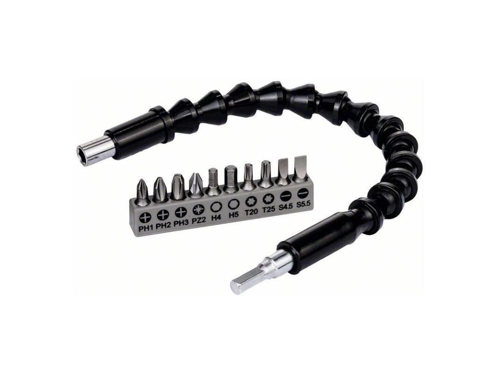 11-dielna súprava s plastovým flexibilným nadstavcov SDB ; 11-dielna sada skrutkovacích hrotov s plastovým flexibilným nadstavcom (300 mm)