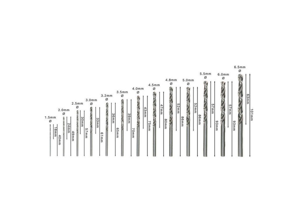 - Priemery (mm): 1,5; 2; 2,5; 3; 3,2; 3,5; 4; 4,5; 4,8; 5; 5,5; 6; 6,5