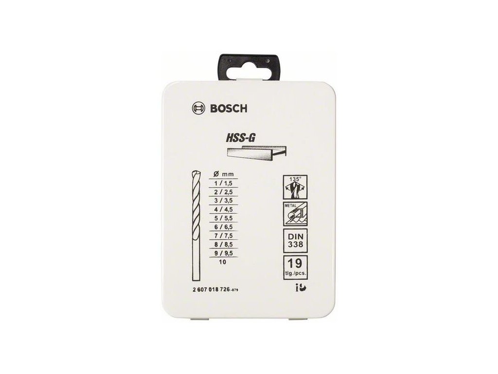 Bosch 19-dielna súprava vrtákov do kovu HSS-G, DIN 338, 135° kovovej kazete, - 10 mm 2607018726