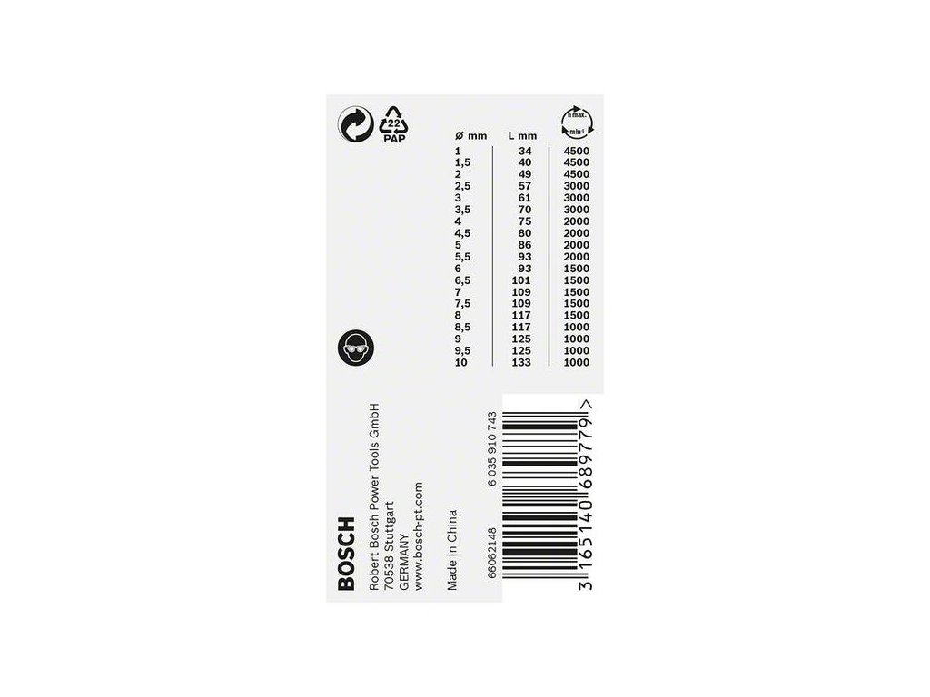 - Priemery vrtákov (mm): 1; 1,5; 2; 2,5; 3; 3,5; 4; 4,5; 5; 5,5; 6; 6,5; 7; 7,5; 8; 8,5; 9; 9,5; 10