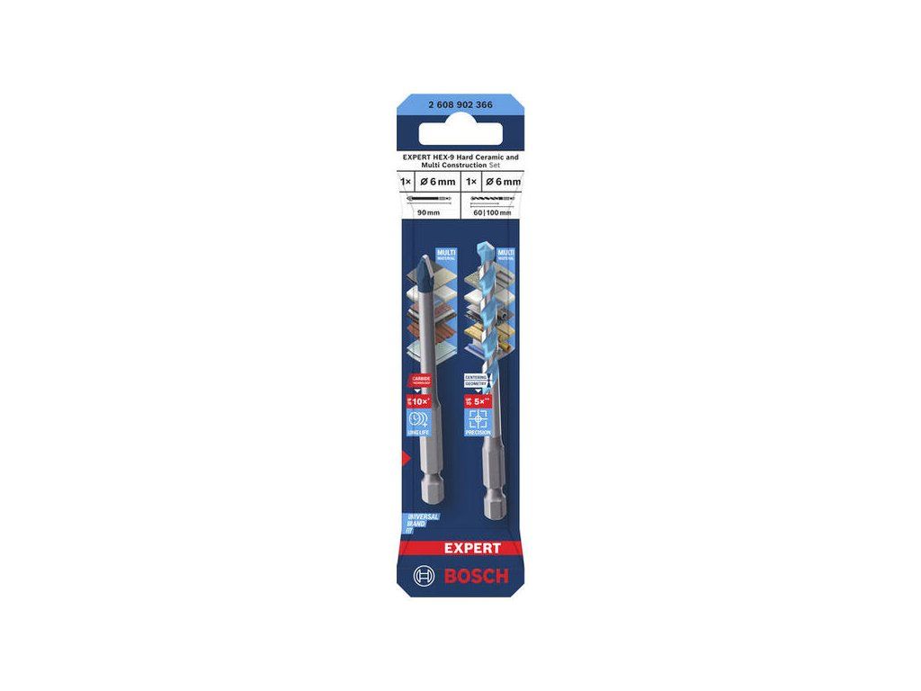 Bosch 2 dielna sada vrtákov EXPERT HEX-9 Hard Ceramic + HEX-9 Multi Construction, 6 mm, 2.608.902.366