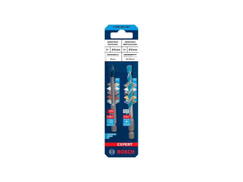 Bosch 2 dielna sada vrtákov EXPERT HEX-9 Hard Ceramic + HEX-9 Multi Construction, 8 mm, 2.608.902.367