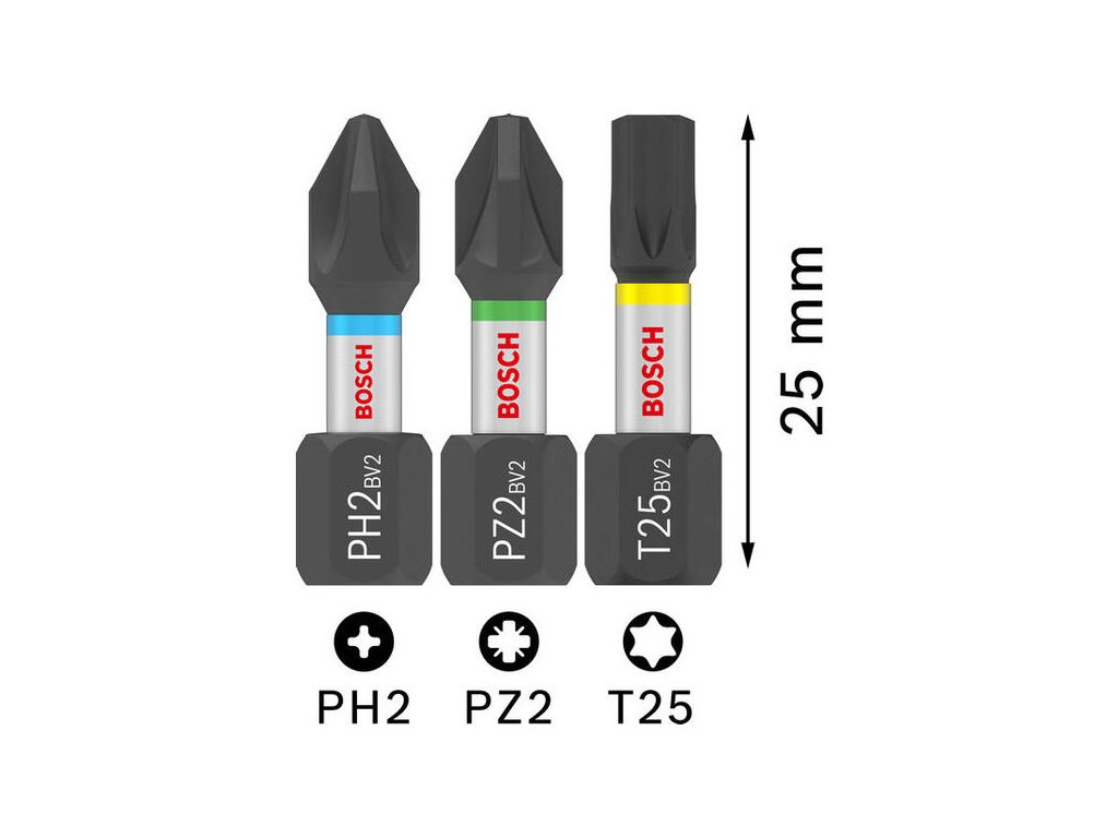 Sada skrutkovacích bitov Bosch PRO Impact, PH2 (5×), PZ2 (5×), T20 (5×), T25 (5×), T30 (5×), 25 mm, 25 ks