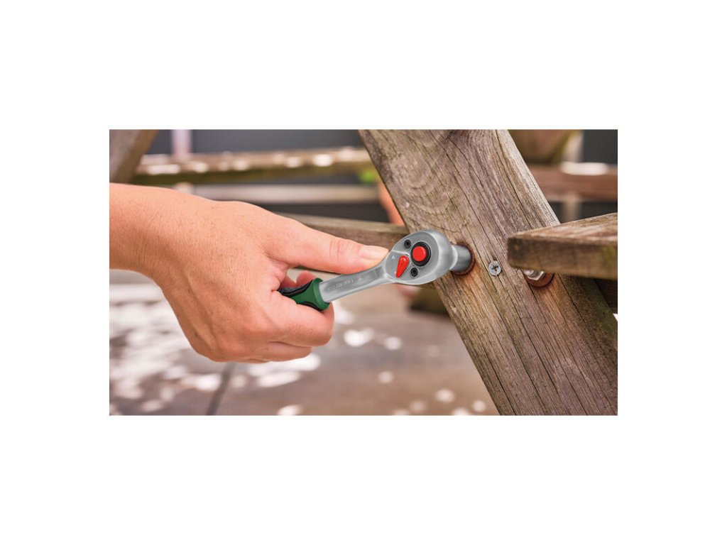 - 26-dielna súprava s ¼-palcovou račňou, kombinovanými kliešťami, univerzálnym skrutkovačom, skrutkovacími hrotmi a omnoho viac
