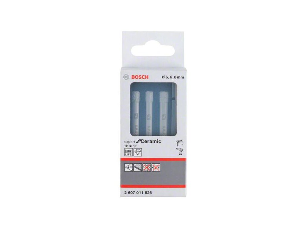 Bosch 3 dielna sa diamantových vrták na vŕtanie nasucho Expert for Ceramic 6/6/8 x 33mm, 2.607.011.626