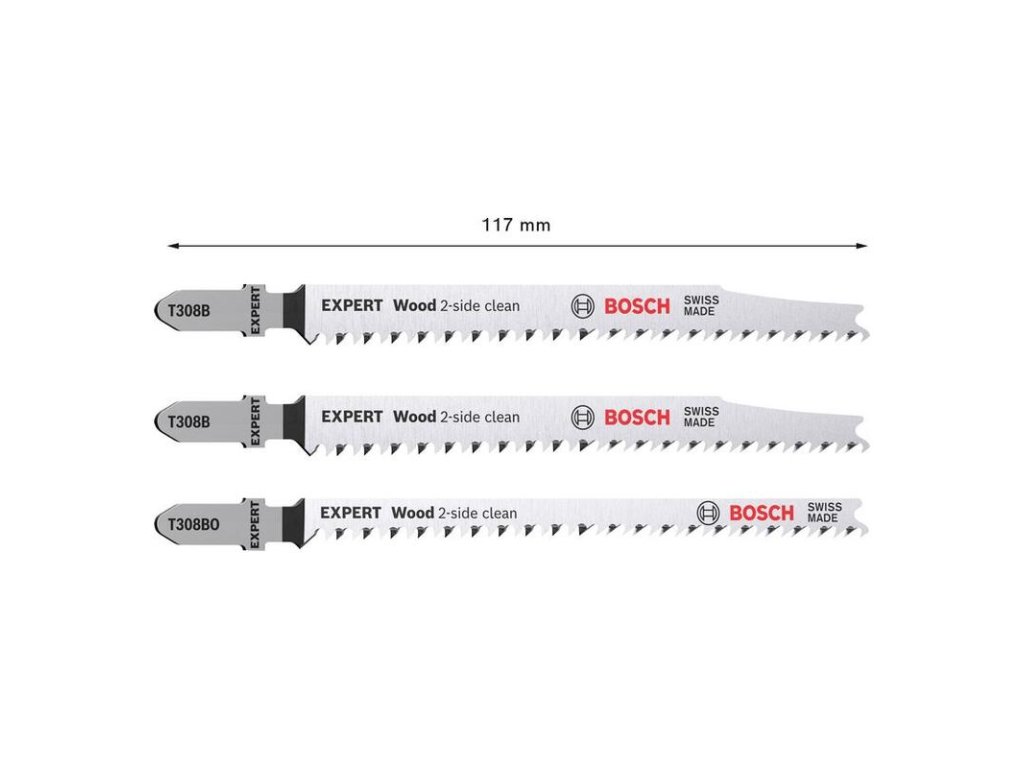 Vysoká presnosť rezania dreva bez ostrapov! Zabezpečenie toho, aby bola „čistá strana“ rezu priamočiarou na viditeľnej časti pracovného materiálu, bolo u stolárov a drevárov vždy umením. Niekedy môžete obrobok otočiť, inokedy môžete držať samotnú priamočiaru pílu hore nohami. Alebo môžete použiť pílový list EXPERT Wood 2-side clean, ktorý vďaka dvom radom zubov na oboch stranách perfektne reže bez ostrapov. Pílový list priamočiarej píly Bosch EXPERT Wood 2-side clean je vďaka svojim mimoriadne ostrým a presne brúseným zubom vhodný na rezanie mäkkého dreva do hrúbky 50 mm. Výrobcovia skriniek tak získajú dokonalú povrchovú úpravu a nemusia strácať čas brúsením po každom reze priamočiarou pílou. Pílový list je dostupný vo verzii pre rovné rezy (T308B), zakrivené rezy (T308BO) a pre presné uhlové rezy (T308BP).