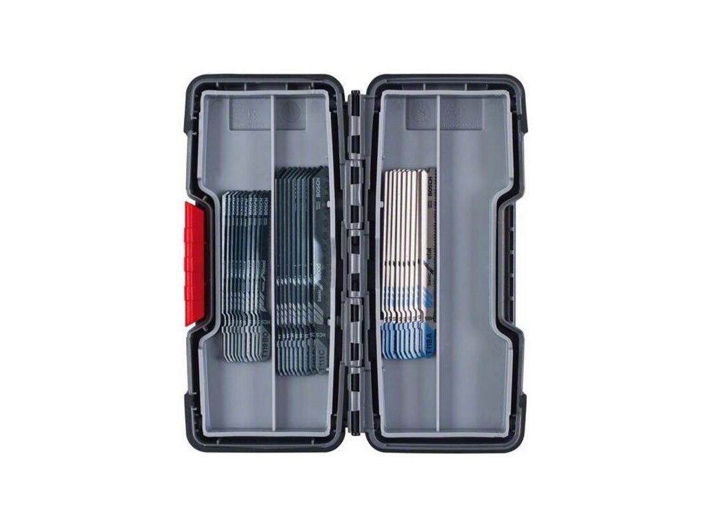 30-kusová sada listov lupienkovej píly Basic for Wood and Metal, Tough Box je ideálna na použitie v dreve a kove. Obsahuje listy na rovné a zakrivené rezy do mäkkého dreva aj listy na spoľahlivé výsledky pri rezaní kovu a rúr.