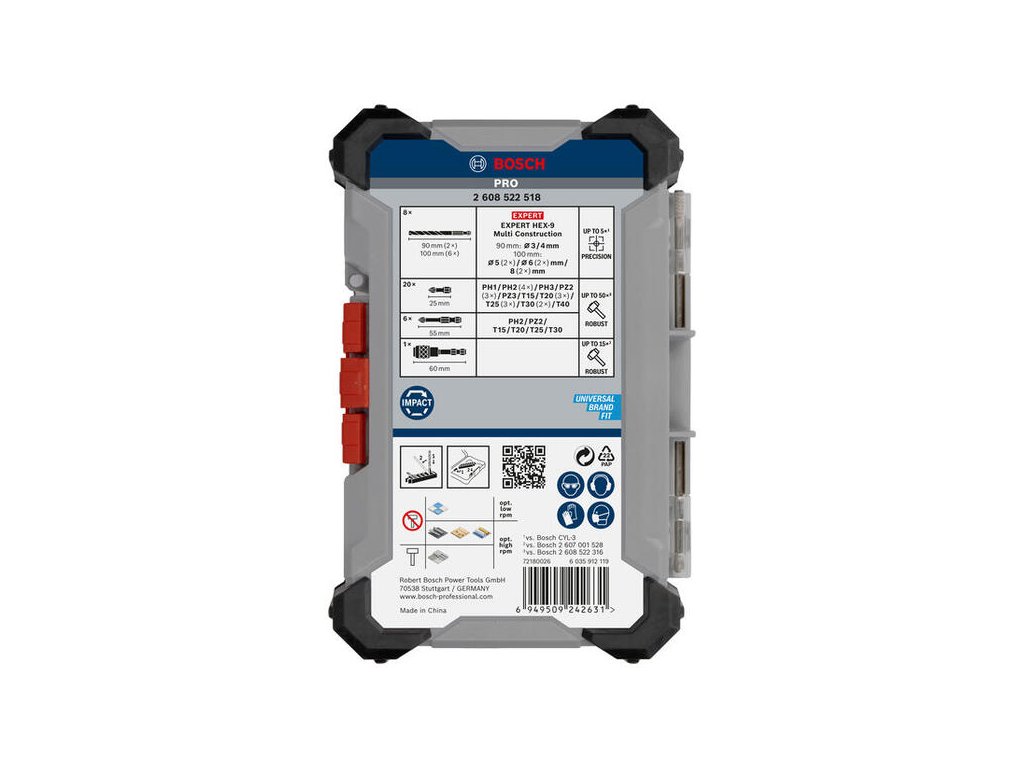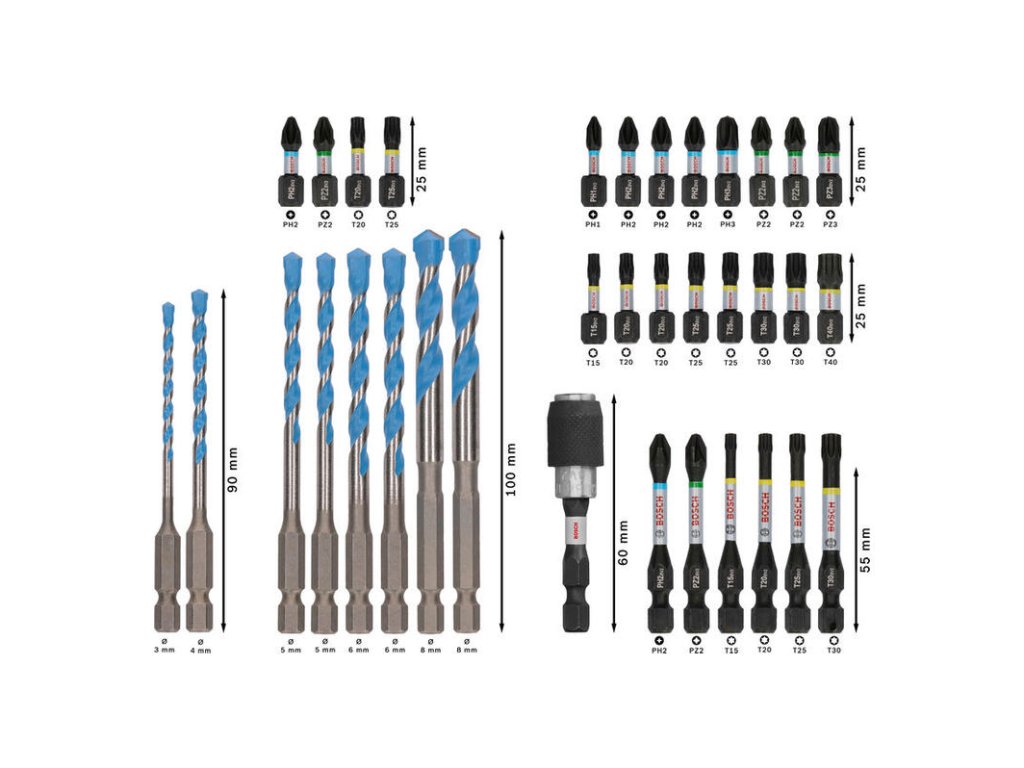 Zmiešaná sada Bosch PRO Impact skrutkovacich bitov a vrtákov Multi Construction, 35 ks