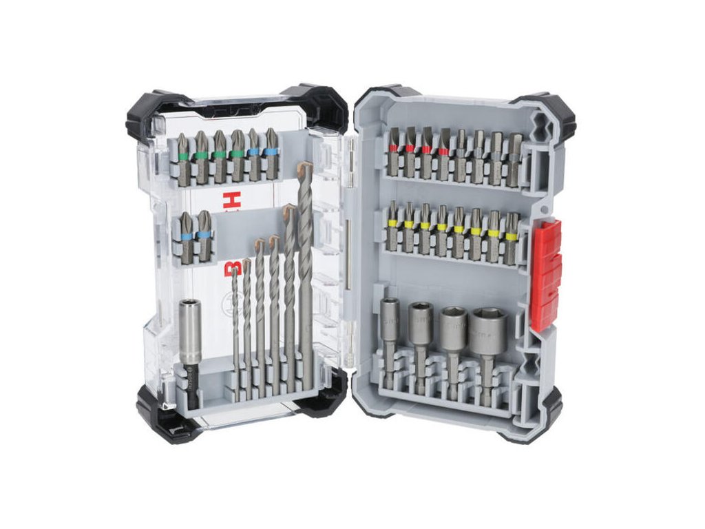 Sada Extra Hard a CYL-3, 35 ks, obsahuje všetko štandardné príslušenstvo, ktoré potrebujete na efektívne skrutkovanie a vŕtanie do betónu a kameňa