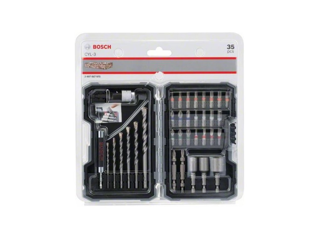 Táto komplexná sada 35 ks vrtákov a skrutkovacích bitov má všestranné využitie. Obsahuje príslušenstvo na dôležité vŕtacie a skrutkovacie práce. Modifikovaná oceľ S2 a proces optimalizovaného tepelného spracovania zaisťujú mimoriadnu tvrdosť bitov pre vynikajúci výkon pri všetkých typoch úloh. Zúžená torzná zóna bitu sa ľahko vyrovnáva s max. úrovňami krútiaceho momentu absorbovaním sily a vibrácií pri skrutkovaní. Bity sú farebne označené pre okamžitý prehľad a rýchle identifikovanie vhodného typu. Vrtáky CYL-3 poskytujú trvalý výkon v abrazívnych materiáloch ako betón a prírodný kameň. Bity majú 1/4-palcovú stopku s vonkajším šesťhranom na použitie so skrutkovačmi a vŕtacími skrutkovačmi. Vrtáky majú valcovitú stopku pre všetky elektrické či akumulátorové príklepové vŕtačky. Sada 35 ks vrtákov a skrutkovacích bitov sa dodáva v praktickej a robustnej kazete zaisťujúcej prehľadnosť obsahu, ako aj bezpečné uloženie a prenos. Sada obsahuje: PH1, PH2, PH3 PZ1, PZ2, PZ3 S 3/4/5/6 HEX 3/4/5/6 TH10, TH15, TH20 (2x), TH25, TH27, TH30, TH40 Nástrčkový bit 8/10/13 mm CYL-3 3,0/4,0/5,0/5,5/6,0/8,0 mm Obojstranný bit PH2/PZ2 Obojstranný bit TH20/TH25 Magnetický univerzálny držiak Univerzálny držiak na rýchlu výmenu